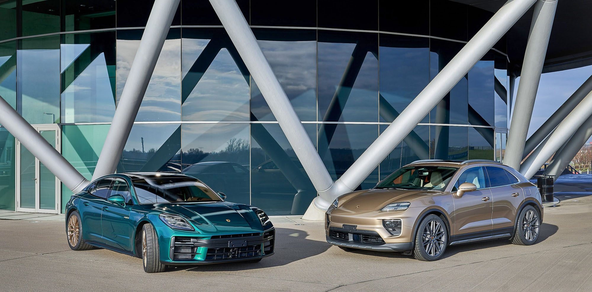 Lean, digitally connected, and highly automated processes allow Leipzig to build vehicles with precision while accommodating customer‑specific requirements for markets around the world. In the body shop, aluminum, steel, and other materials are clinched, welded, and riveted to create a structure that is both lightweight and rigid. The paint shop adds color – for the anniversary vehicles, Gold-bronze as Paint-to-Sample for the Macan, and the special color Emerald-green for the Panamera. In assembly, both models are prepared for their “marriage” – the moment body and powertrain are joined.