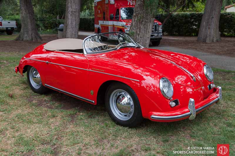 A blue 356B Cabriolet and a white 1954 356 Speedster looked for buyers willing to meet the six-figure asking prices and give them new homes. Visitor cars in the parking spots added their own flavor. The color combinations changed as owners arrived and departed, vividly illustrating the vast Porsche palette over the years.