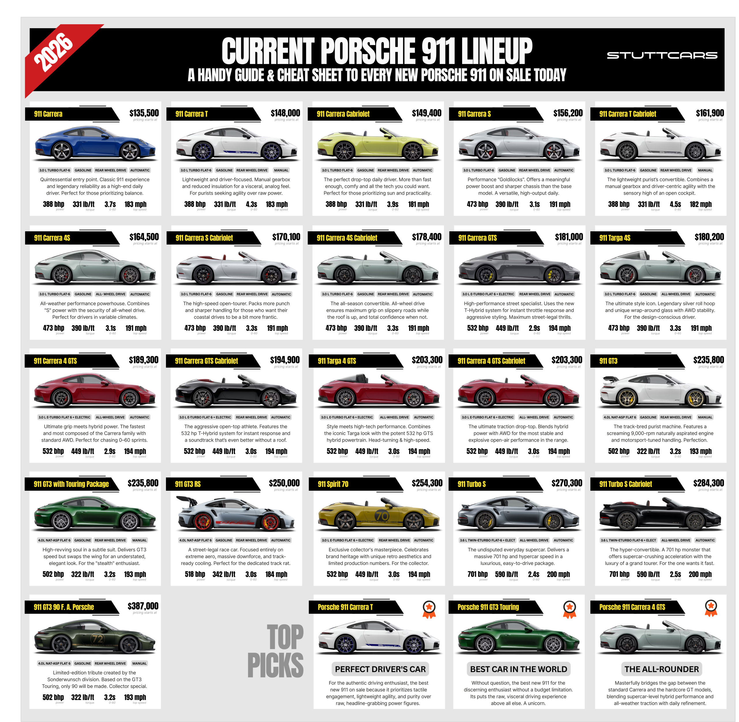 The 2026 Porsche 911 Lineup - A Handy Cheat Sheet & Overview (Free to Download & Print)