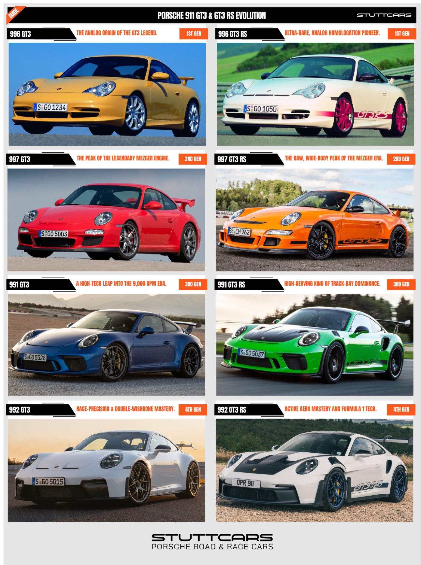 Variants: 997.1 GT3, 997.2 GT3, 997.1 GT3 RS, 997.2 GT3 RS, 997.2 GT3 RS 4.0