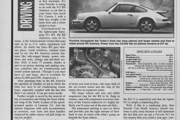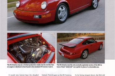 The original 1973 Carrera RS was available in Europe but not in the USA. Porsche decided to build the 1993 Carrera RS both to European spec and a limited number in compliance with US regulations. These US spec cars were assigned the name “RS America”.