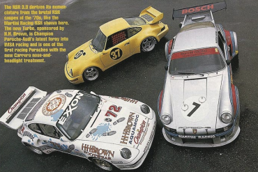 Porsche wanted to race an RSR variant in the GT-category and the result was the car you see here, the Porsche 911 Carrera RS 3.8 (964). The RS 3.8 served as the homologation base for the 3.8 RSR for international competition. Many of its features were borrowed from the 964 Carrera Cup cars. There were two versions; the Sport (or Lightweight) weighed about 10 percent less than the Touring version. Only 55 cars were ever made and they were all special ordered from the factory. Power for the RS 3.8 came from a 3.8 liter version of the M64 motor and was good for 300 bhp.