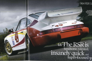 The 964 Carrera RSR reflected Porsche’s return to production-based GT racing dominance. The Carrera RSR 3.8 was an all-out racing car and could be delivered to the track in a race-ready, ‘just-add-driver’ form. The engine of this car was further tweaked and fitted with racing cams, the output varying from 325bhp to 375bhp, depending on track requirements.