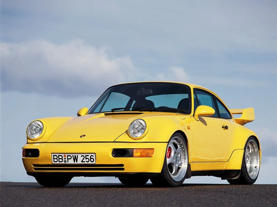What made the 964 special is how it managed to combine this leap in technology with the traditional 911 character. It retained the air-cooled flat-six engine, now enlarged to 3.6 liters and producing up to 250 hp, offering both refinement and classic Porsche sound. The all-wheel-drive Carrera 4 proved that the 911’s tail-happy handling could be tamed without dulling its spirit, while the rear-wheel-drive Carrera 2 preserved the pure, analog driving experience enthusiasts loved. The 964 also spawned some of the most iconic derivatives of the era, including the 911 Turbo, Carrera RS, and Speedster, all of which showcased Porsche’s ability to balance innovation with heritage. In short, the 964 was the first truly modern 911 — a car that kept its soul intact while embracing technology, making it the model that secured the 911’s future in a rapidly changing automotive world.