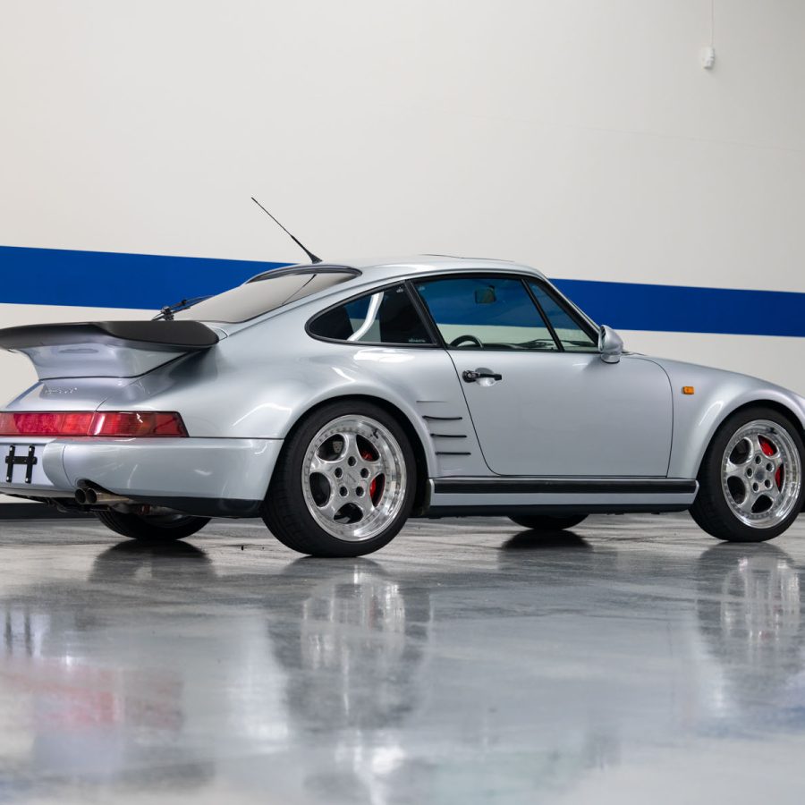 The 964 Turbo was the last of the single turbo rear-wheel drive 911 Turbos and was the successor to the famous 930 Turbo. Porsche engineers had been working on a new turbo motor for the 964 but were not fully ready in time for launch of the 964 Turbo. The result was that the 964 Turbo was initially released with the proven 3.3-litre turbo engine from the 930 Turbo. A number of updates improved the engine and power increased to 320 bhp. The 964 911 Turbo had a wider body with significantly more flared wheel housings.