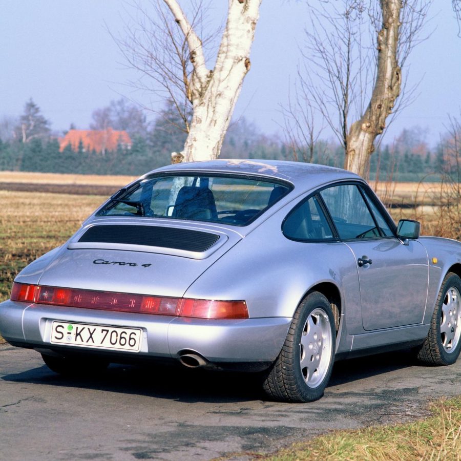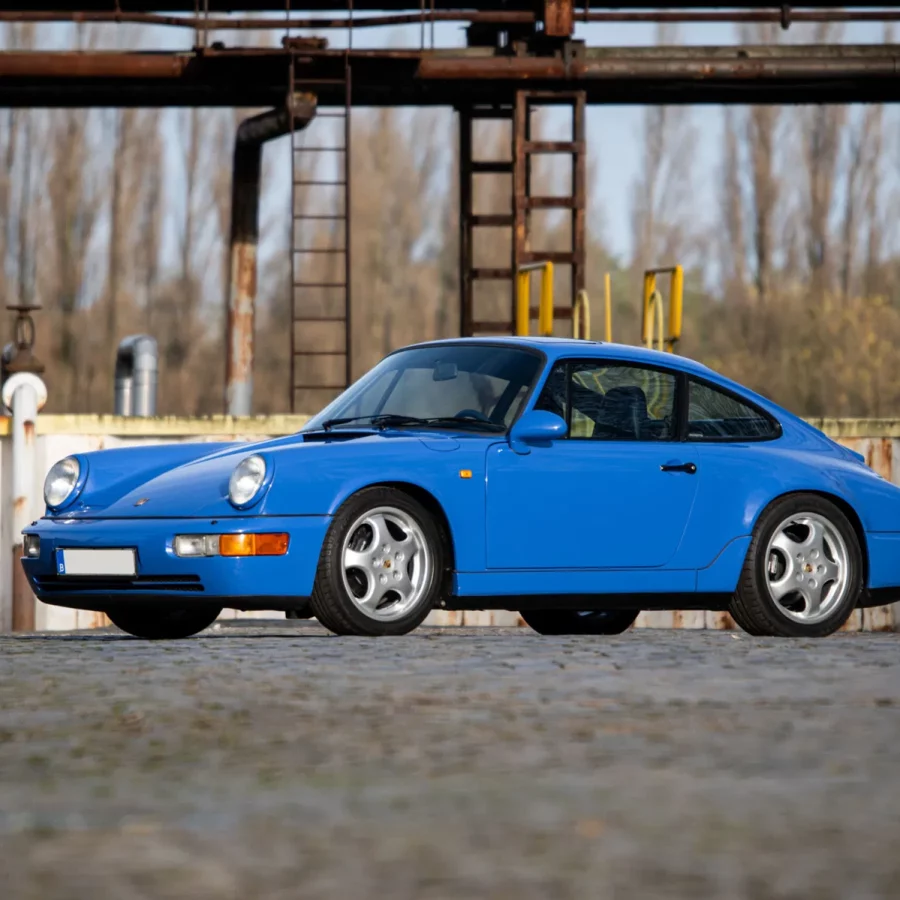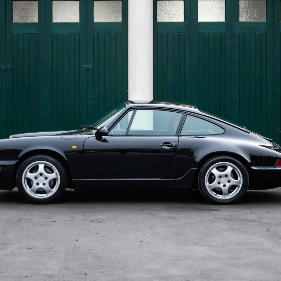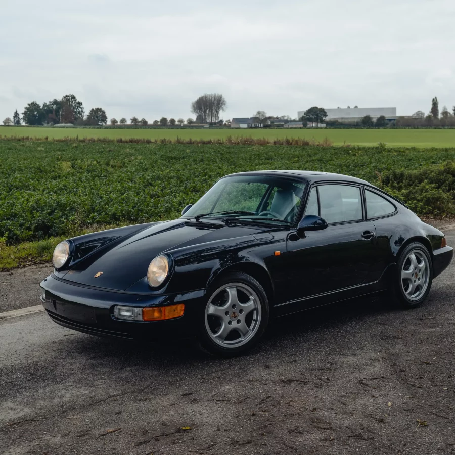 The Porsche 911 (964 generation) was produced from 1989 to 1994, serving as the third generation of the 911 and marking the bridge between the classic air-cooled era and the modern age. It debuted in 1989 with the Carrera 4 (C4) — the first 911 to feature all-wheel drive, derived from Porsche’s 959 supercar technology — followed shortly by the rear-wheel-drive Carrera 2 (C2) in 1990. Over its production run, the lineup expanded to include Coupé, Targa, and Cabriolet body styles, as well as high-performance variants like the Turbo (1990–1994), RS (1992), and Speedster (1993–1994).