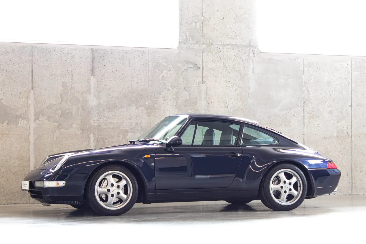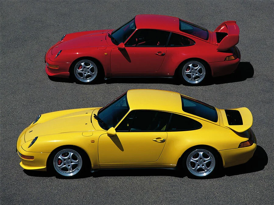 The Porsche 911 (993 generation) was produced from 1994 to 1998, marking the fourth generation of the 911 and the final era of the air-cooled engine. It officially debuted in late 1993 for the 1994 model year and remained in production until early 1998, when it was succeeded by the all-new, water-cooled 996 generation. During its run, the 993 lineup included a wide range of models: the Carrera 2 and Carrera 4 (available as Coupé, Cabriolet, and Targa), the Turbo and Turbo S, the Carrera S and 4S wide-body models, and special variants like the RS, GT2, and Turbo GT2 Evo.
