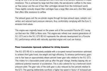 The 997.2 cars all got this new direct injection engines. The cooling effect from spraying gasoline directly into combustion chambers allows for higher compression ratios (both the 997.2 3.6 and 3.8 engines now run 12.5:1 compression) and the result is more power and torque. The 997.2 3.6-liter non-S engine produces 339 bhp, 20hp more than the 997.1 lump, while the 997.2 3.8-liter "S" engine is good for 380 bhp, up 30hp vs the 997.1 version.