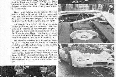 For the 1971 Season, Porsche faced some new competition including Roger Penske’s 600 bhp 512S and the Alfa Romeo T33/3. To prepare, Porsche revised both the short and long versions of the 917. Both had slight body changes that included vertical fins on the K and LH was changed to reach speeds up to 248 mph.