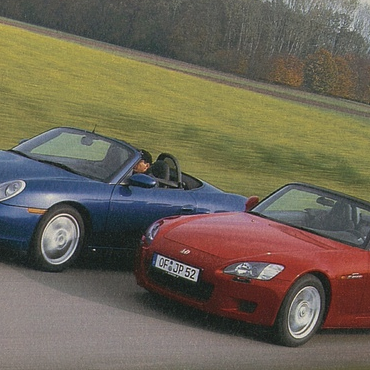 The car received a significant update in 1999 for the 2000 model year, with a bigger base engine, tuned intake runners, and a more powerful S model. Following customer feedback, the base 2.5-liter flat-six was enlarged to 2.7 liters, resulting in an increase of 16 horsepower and 11 lb-ft of torque. The S model got a 3.2-liter naturally aspirated flat-six making 250 horsepower and 225 lb-ft of torque, as well as a six-speed manual gearbox, bigger cross-drilled brakes from the 996, Carrera wheels, upgraded suspension components, a third radiator up front, and a dual-exit exhaust. It has a higher 7200-rpm redline, and was able to sprint to 60 mph in 5.2 seconds when new.