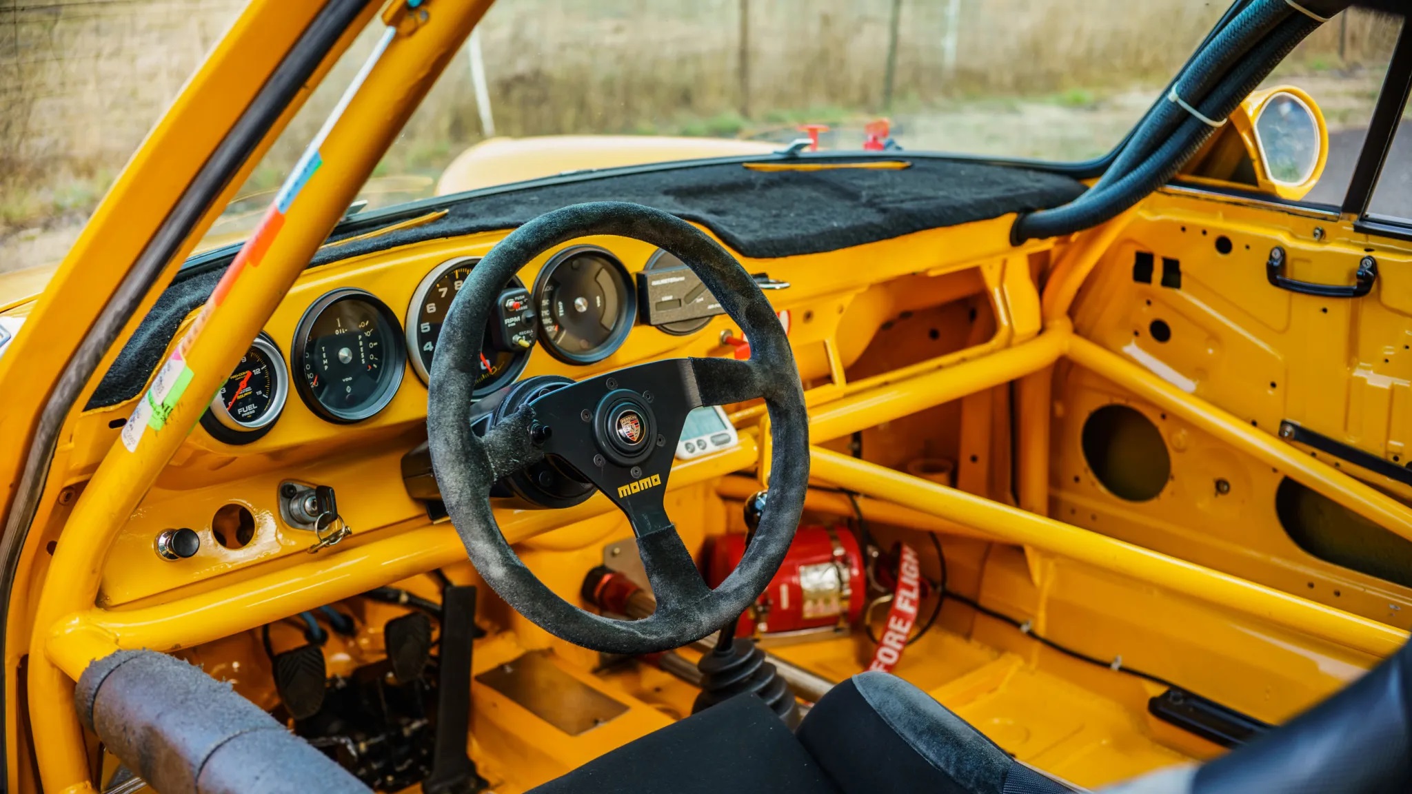This 1970 Porsche 911 S, originally used in SCCA/Team Continental autocross and track events, was upgraded to RSR specifications by Porsche expert and original R-Gruppe member Gordon Ledbetter. The car was refinished in Signal Yellow and over the past 30 years, Ledbetter and his wife have raced it in PCA, SCCA, and NASA events.