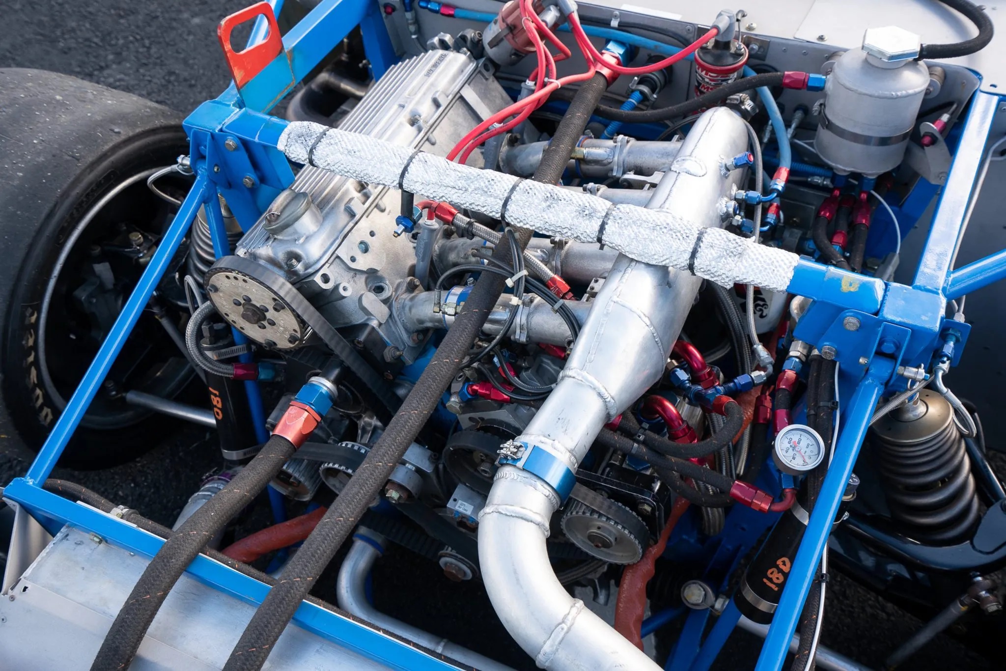 The 2.0-liter dry-sump inline-four engine generated 375 horsepower and nearly 300 pound-feet of torque, propelling the 2,050-pound GTR to a top speed of 180 mph. The car was equipped with an upgraded five-speed dog-leg transmission with limited-slip and rear-mounted cooling.