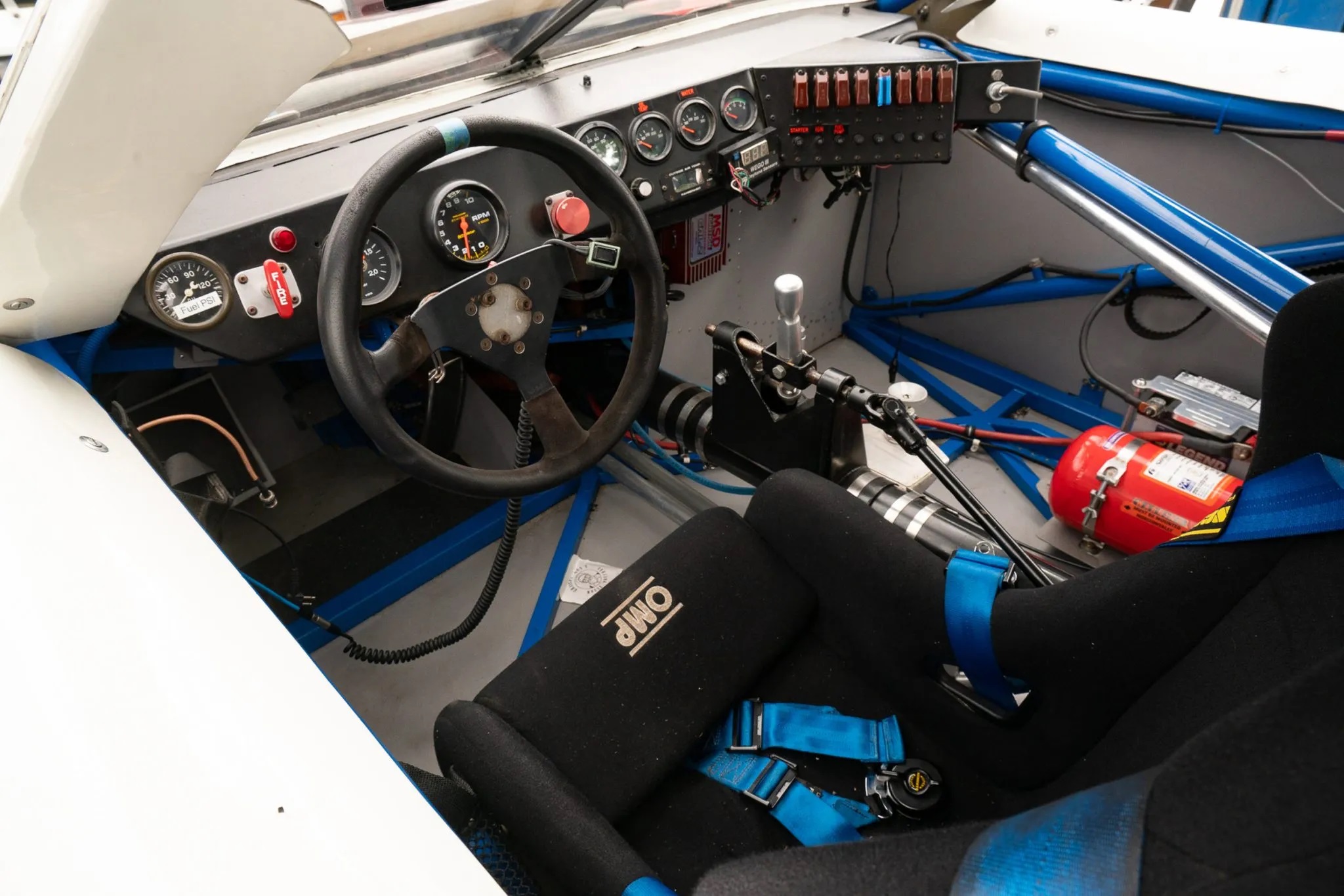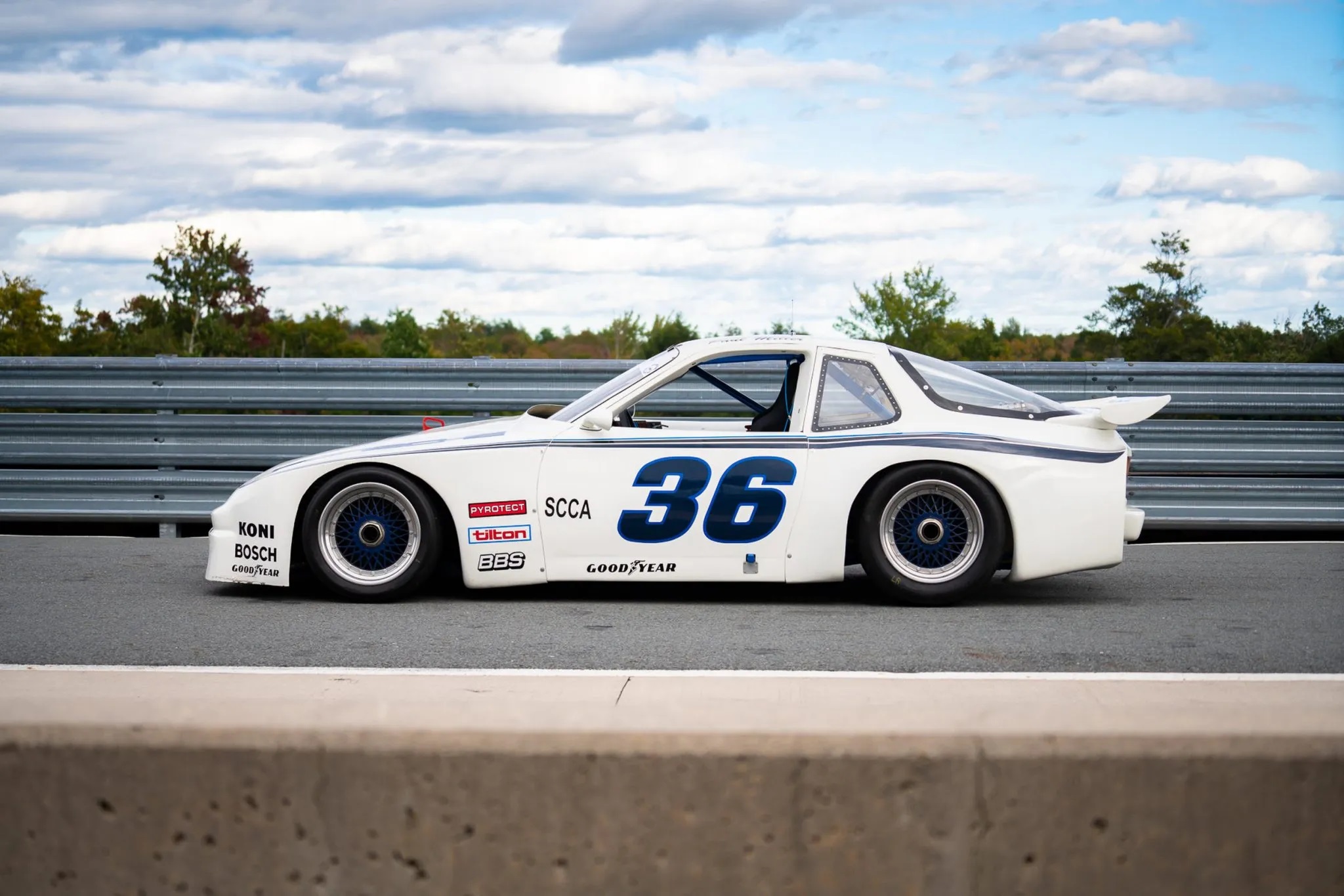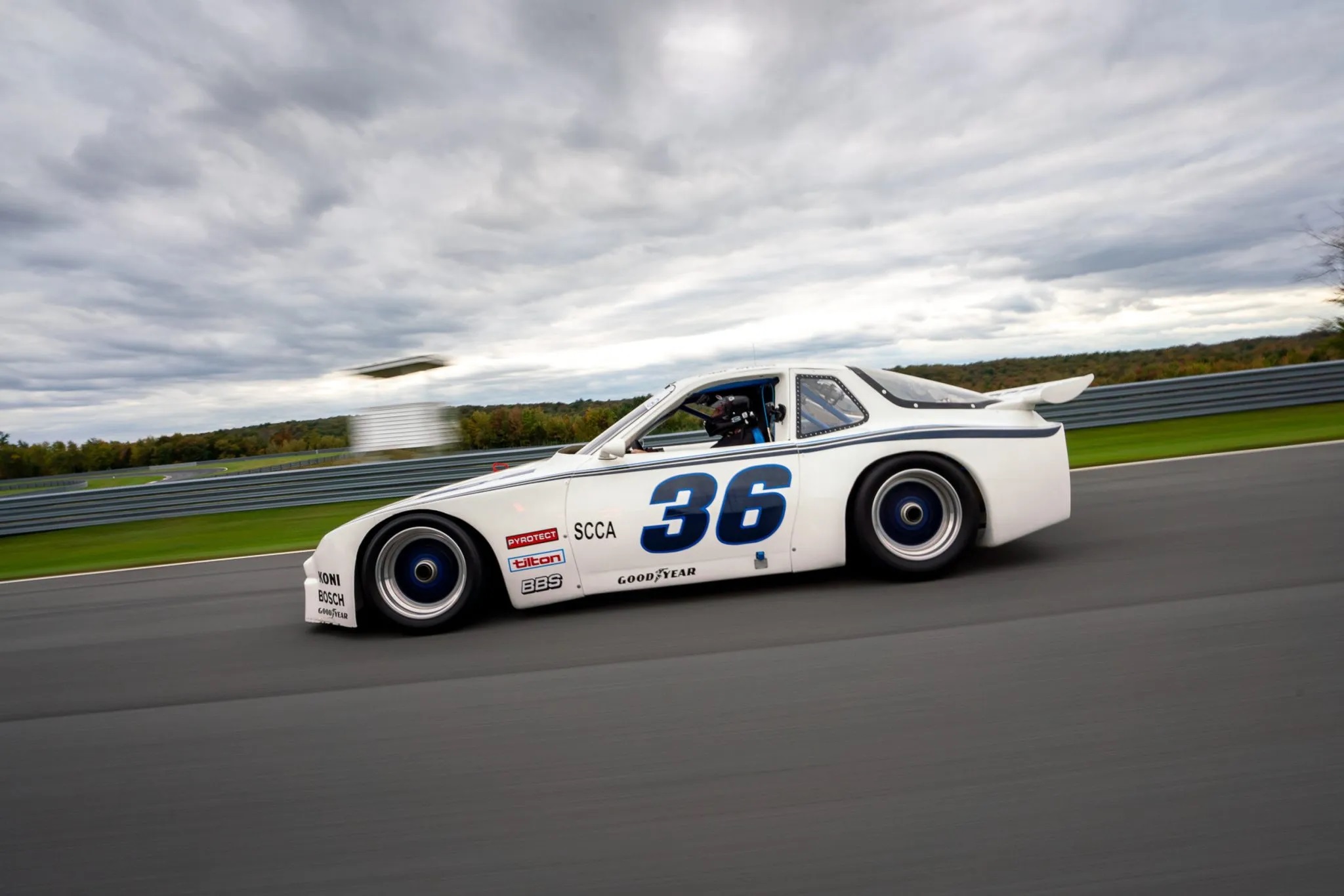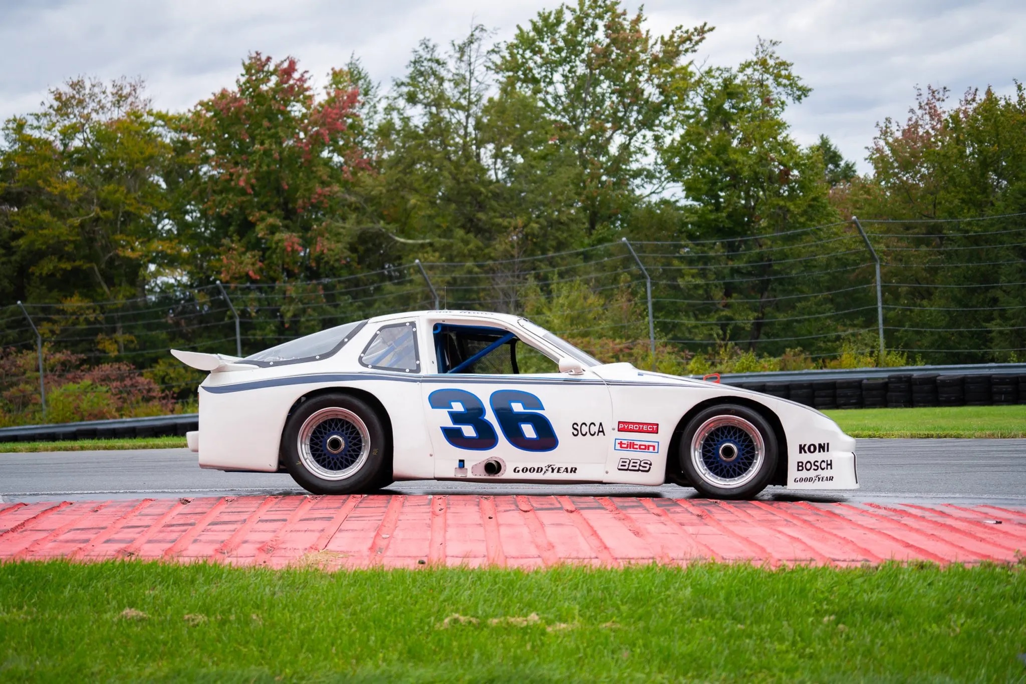 The 924 GTR featured wide 16-inch center-lock BBS alloy wheels with turbine covers for enhanced brake cooling, lightweight doors with sliding plastic panels, and a functional race-oriented interior, nearly identical to factory race cars, but with an added passenger seat, fire-suppression system, and extra gauges.