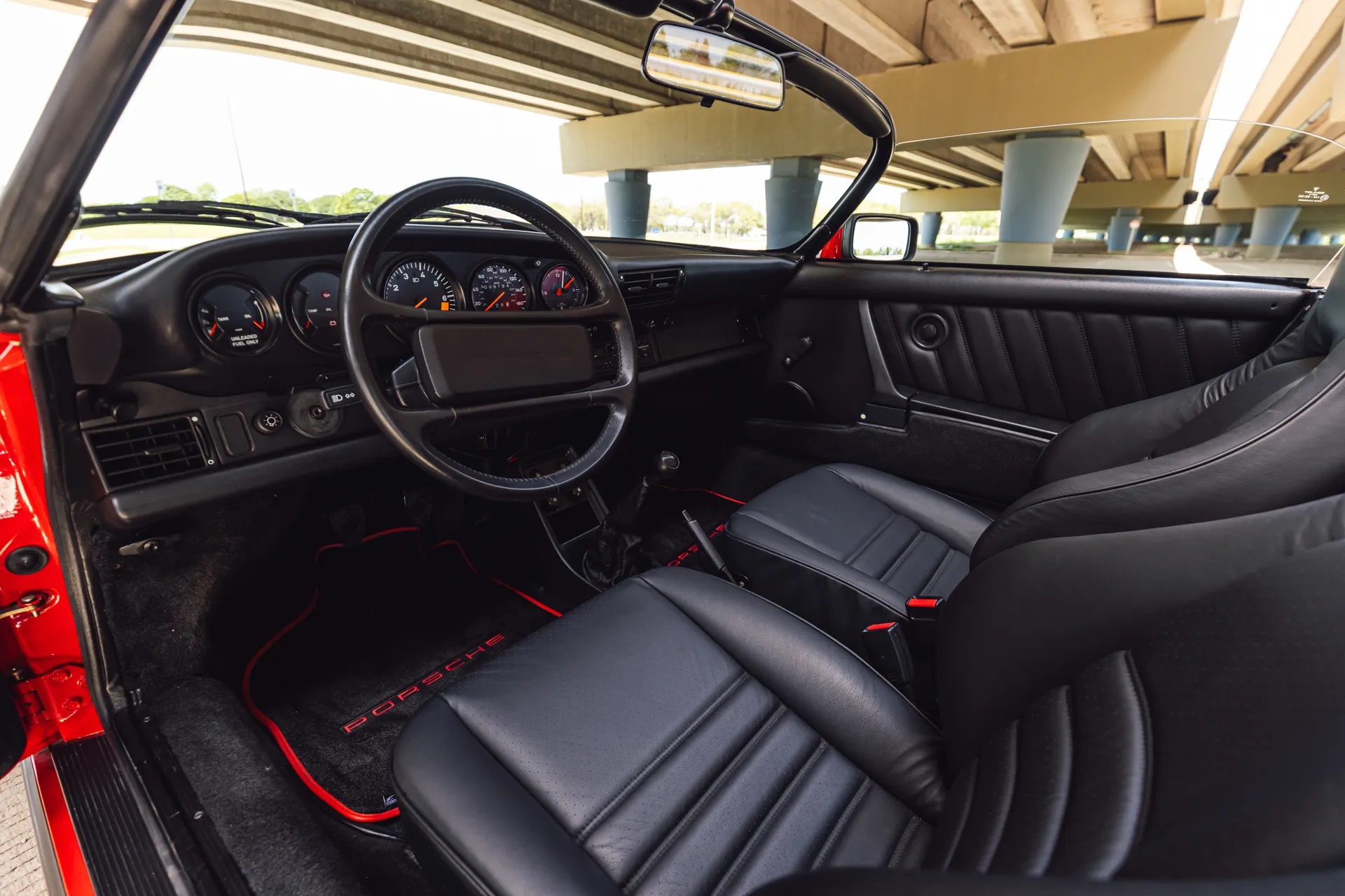 Featuring a sharply angled, low windshield and a fiberglass tonneau cover over the rear of the cockpit, the Speedster had a bold and streamlined appearance. Its striking design was matched by the 3.2-liter air-cooled flat-six engine from the H-program, producing 217 bhp. Power was delivered via a five-speed Getrag G50 transaxle, with braking handled by power-assisted, ventilated, and cross-drilled disc brakes with alloy calipers at all four corners.