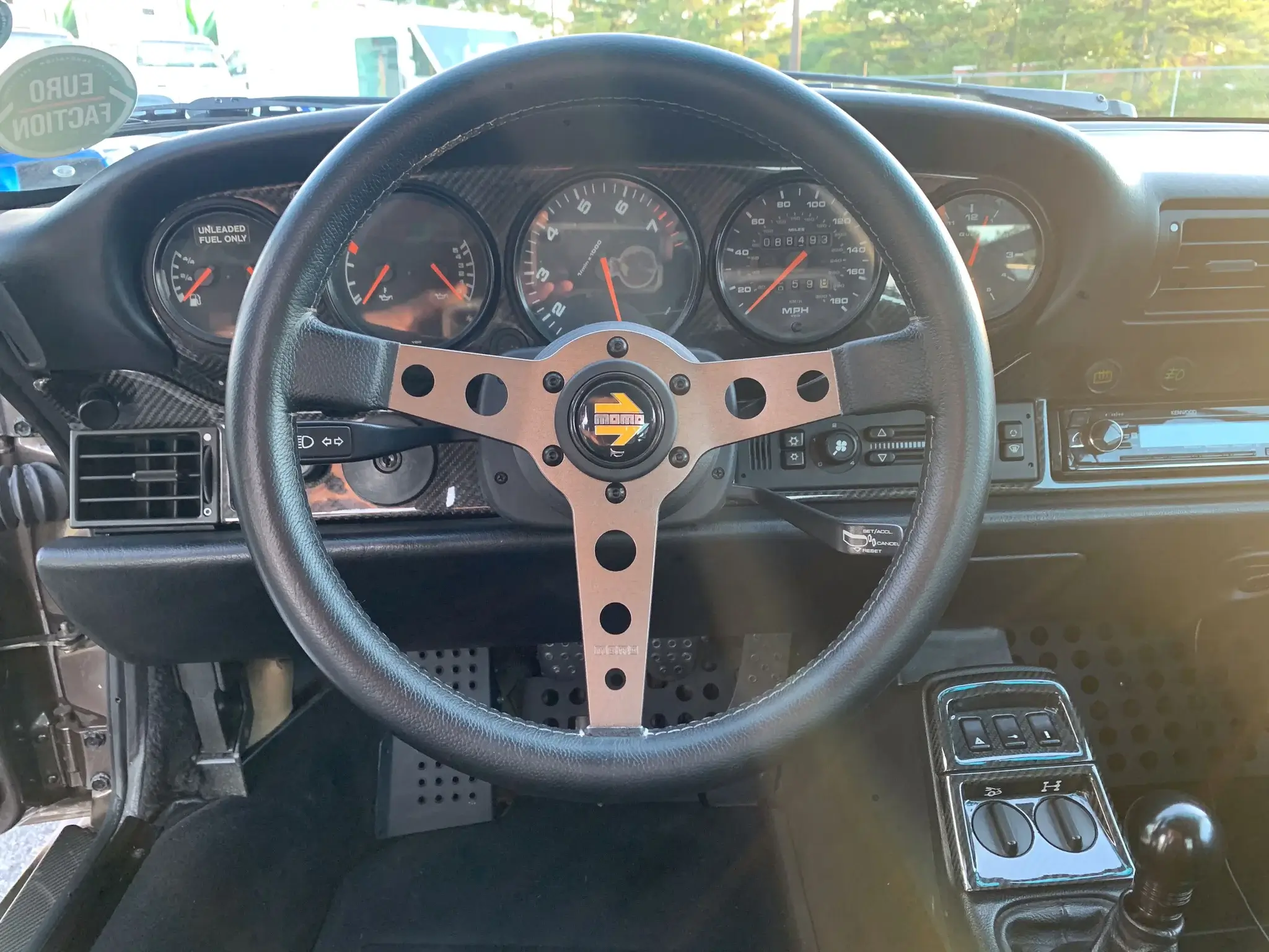 The focus on performance extends to the stripped-down interior, featuring Recaro bucket seats, Rennline accessories, Cargraphic carbon fiber trim, a rear seat delete, a painted roll cage, and a full custom sound system.
