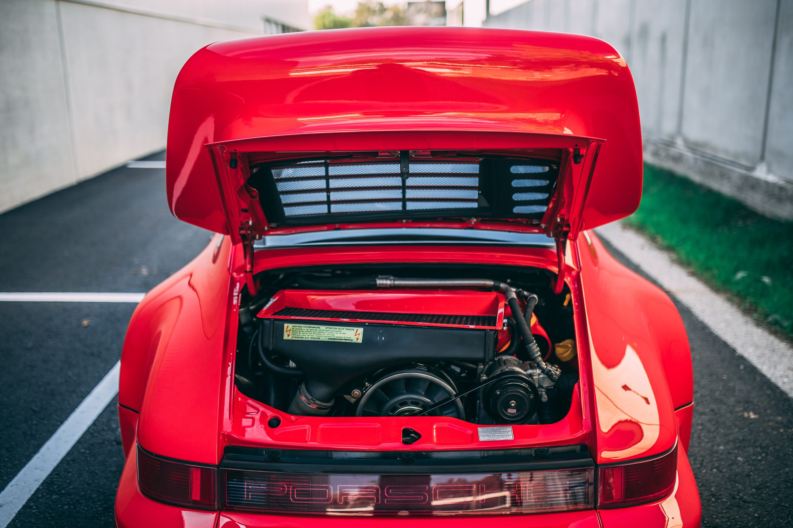 The heart of the beast was a thoroughly reworked engine. Porsche engineers equipped the Type M30/69 SL engine with sportier cams, larger fuel injectors, and a more efficient KKK turbocharger. This resulted in a remarkable 61 horsepower boost, pushing peak output to 381 bhp at 6000 rpm. To signify this enhanced performance, the intercooler housing and air filter proudly sported a coat of red.