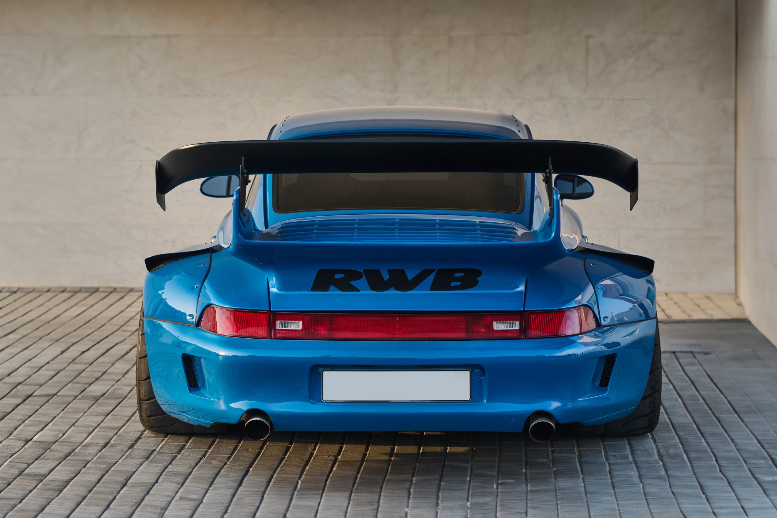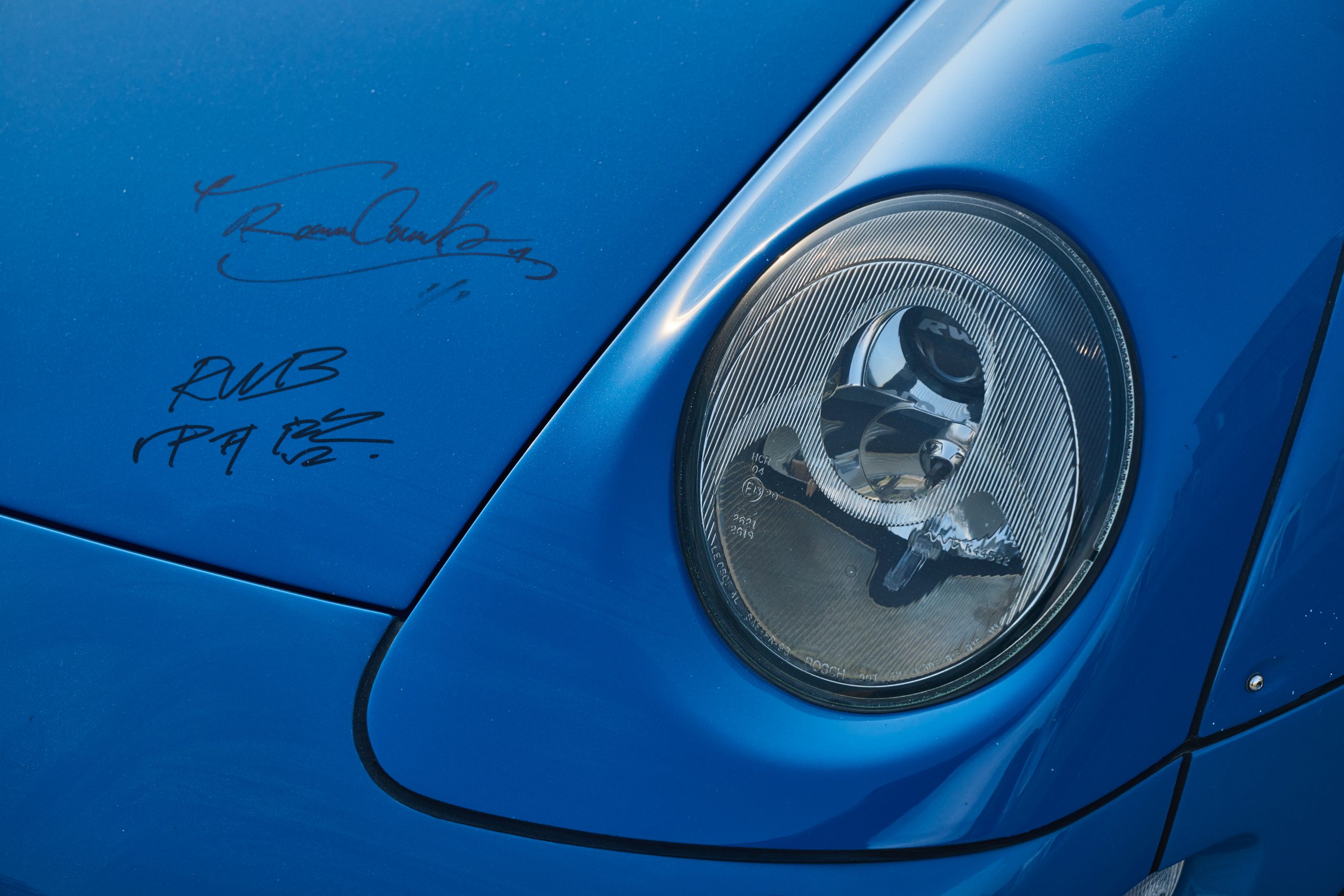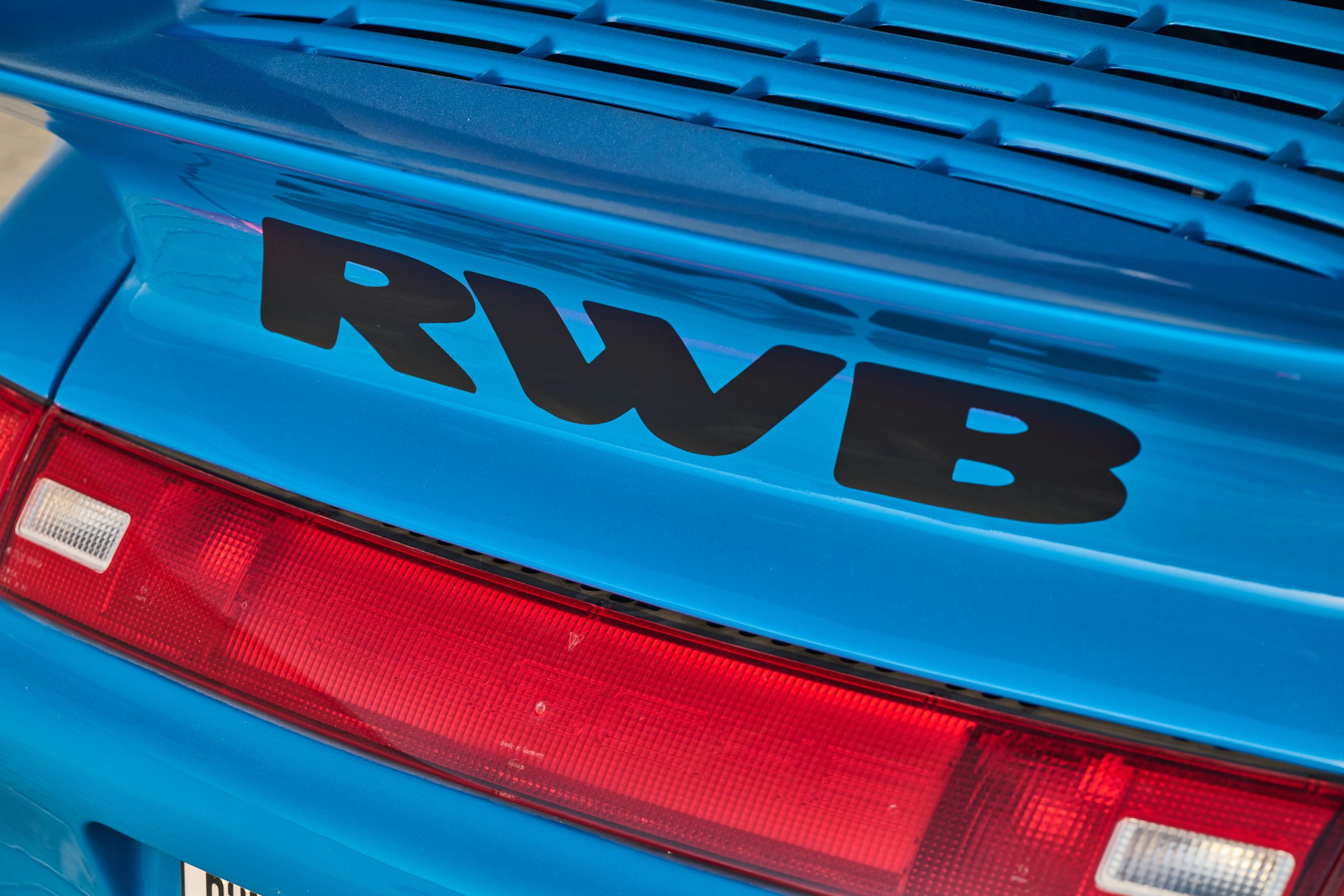 Originally painted in Iris Blue Metallic with a Grey and Blue leather interior, the car underwent a full cosmetic overhaul by RWB. It was stripped down to its bare shell and repainted in Mexico Blue.