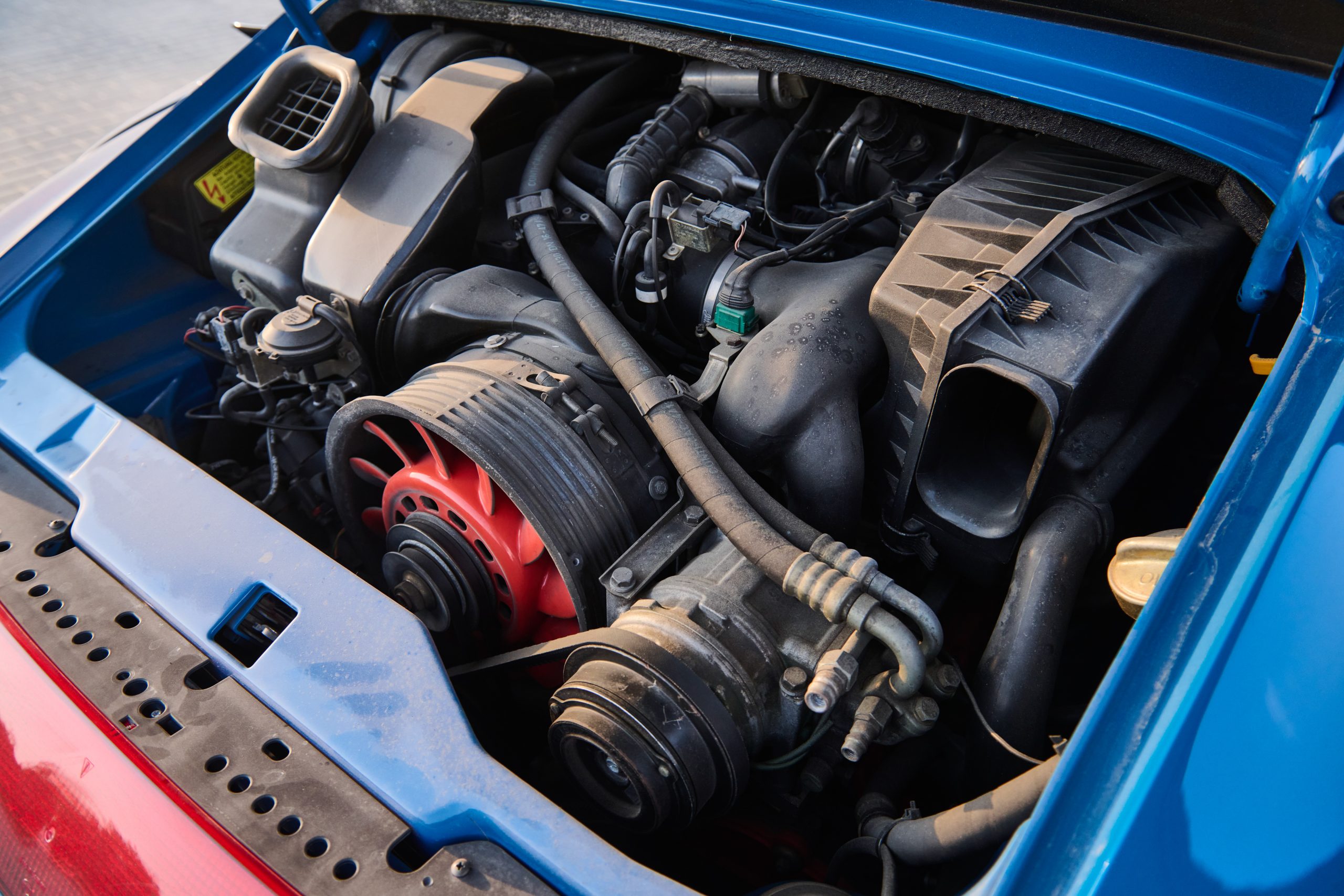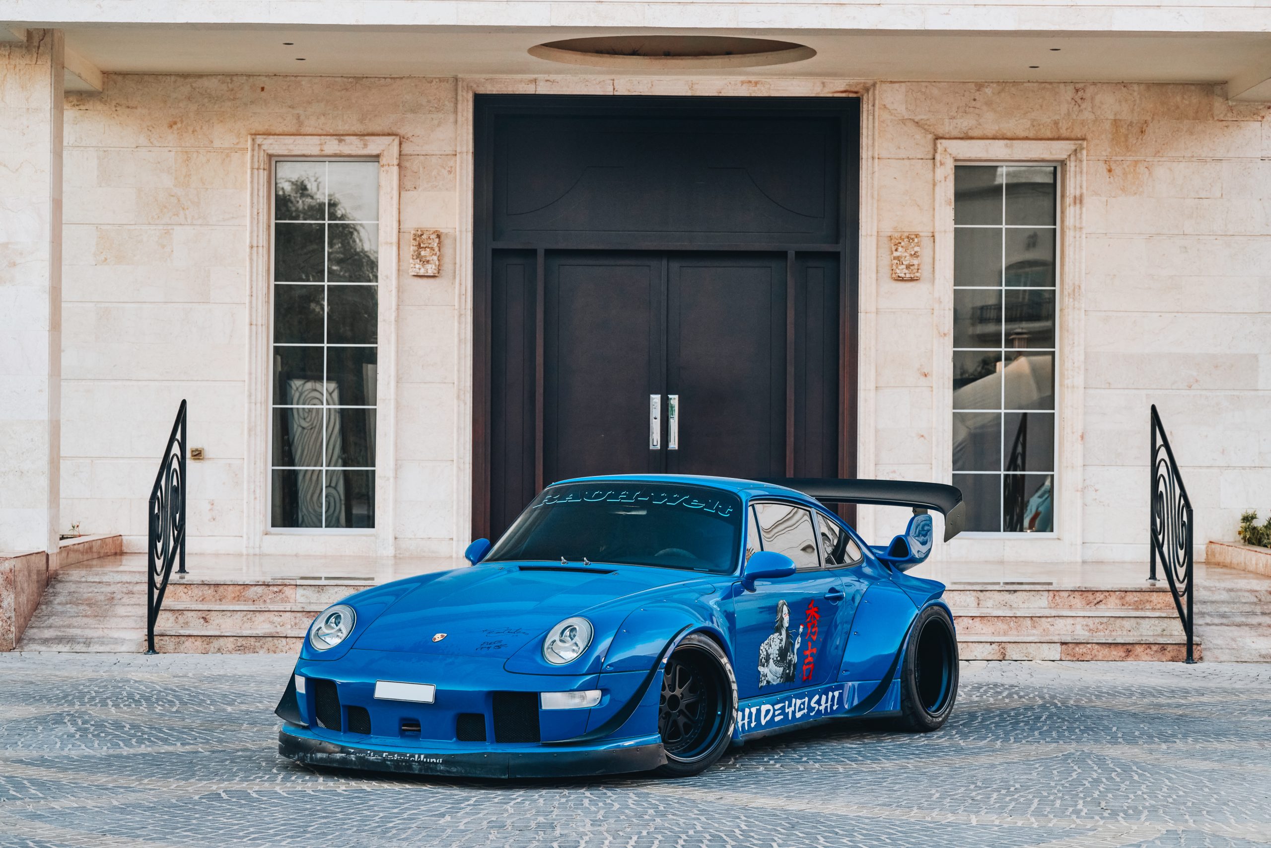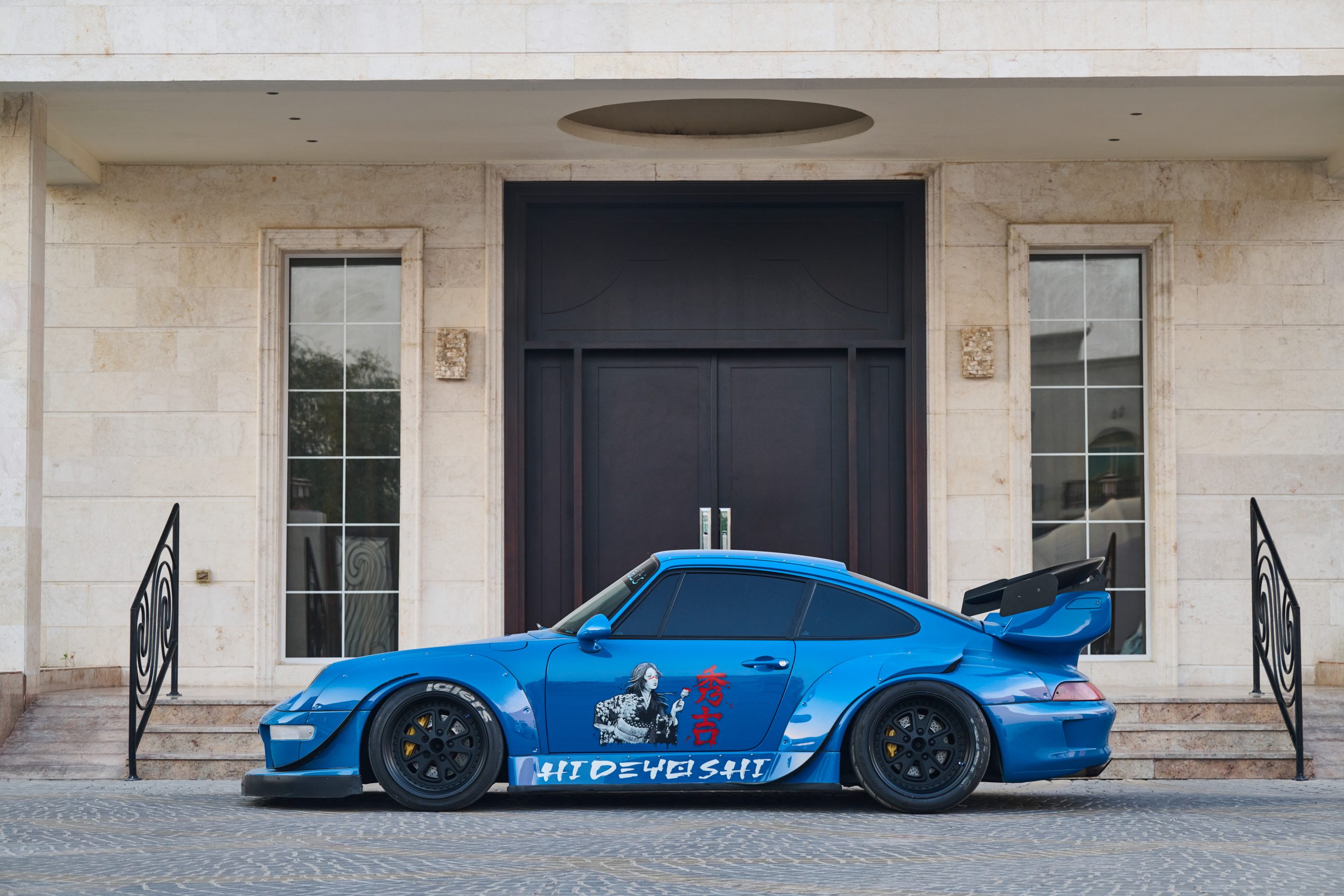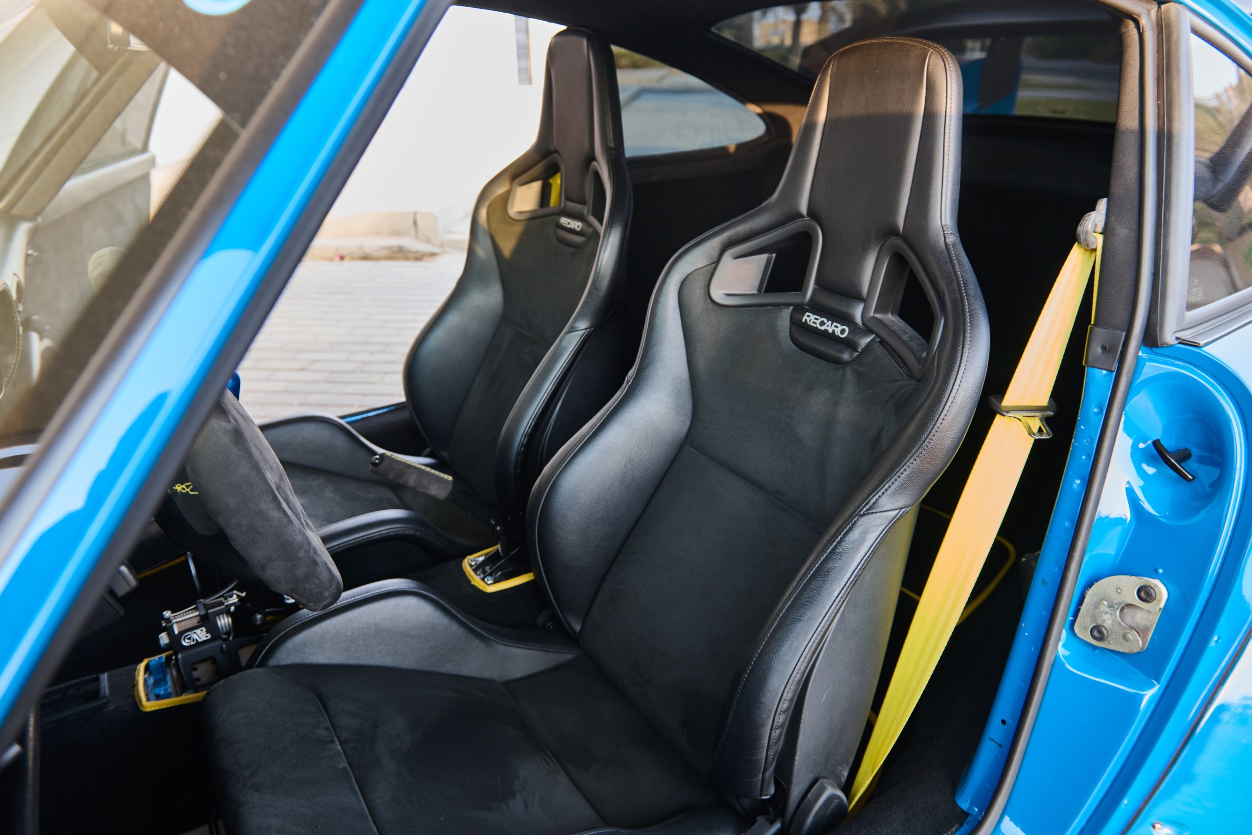 Originally painted in Iris Blue Metallic with a Grey and Blue leather interior, the car underwent a full cosmetic overhaul by RWB. It was stripped down to its bare shell and repainted in Mexico Blue.