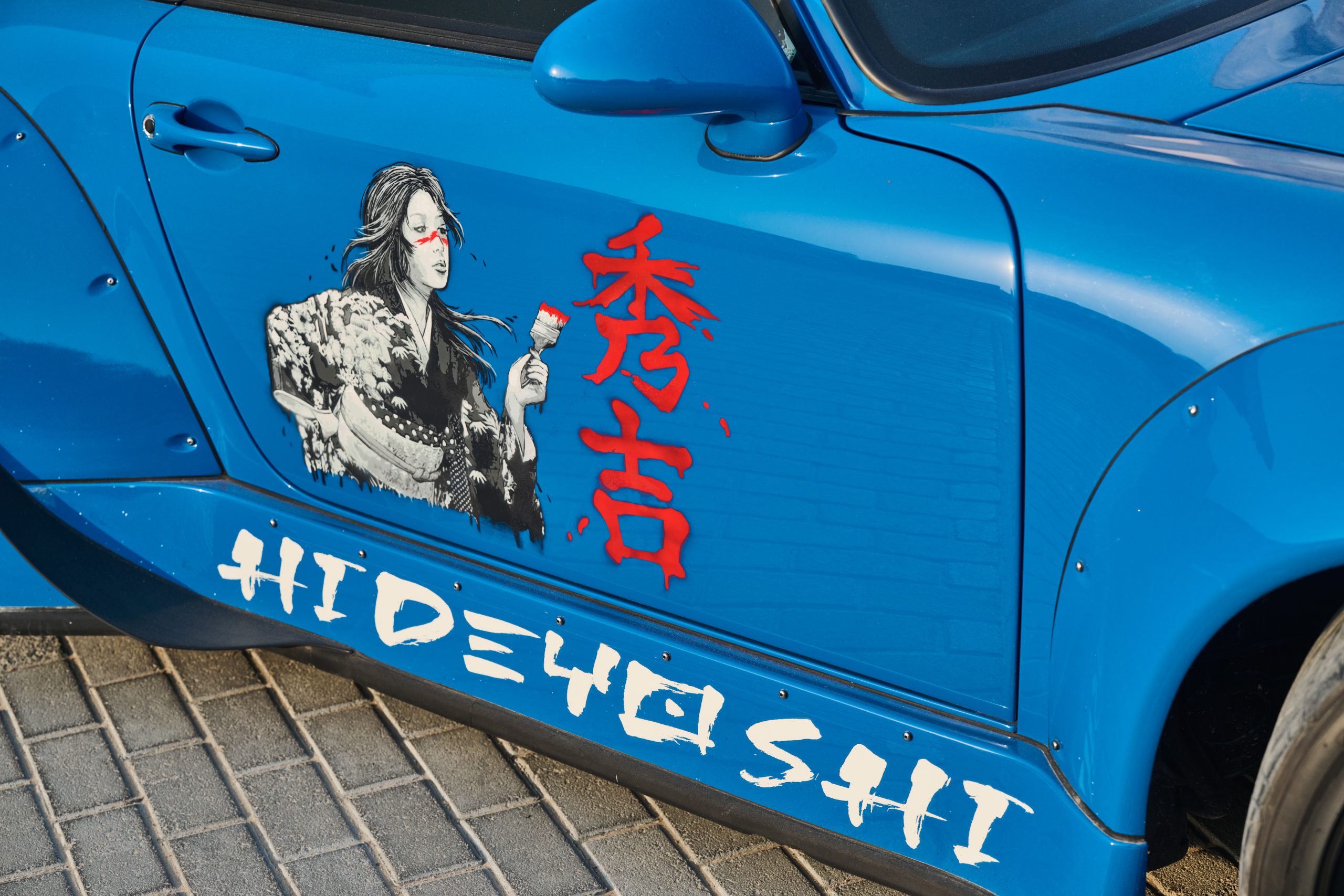 The interior was updated with new black leather and Alcantara, and the car’s distinctive bodywork was adorned with a stenciled image of Toyotomi Hideyoshi, created by renowned Japanese street artist RoamCouch.