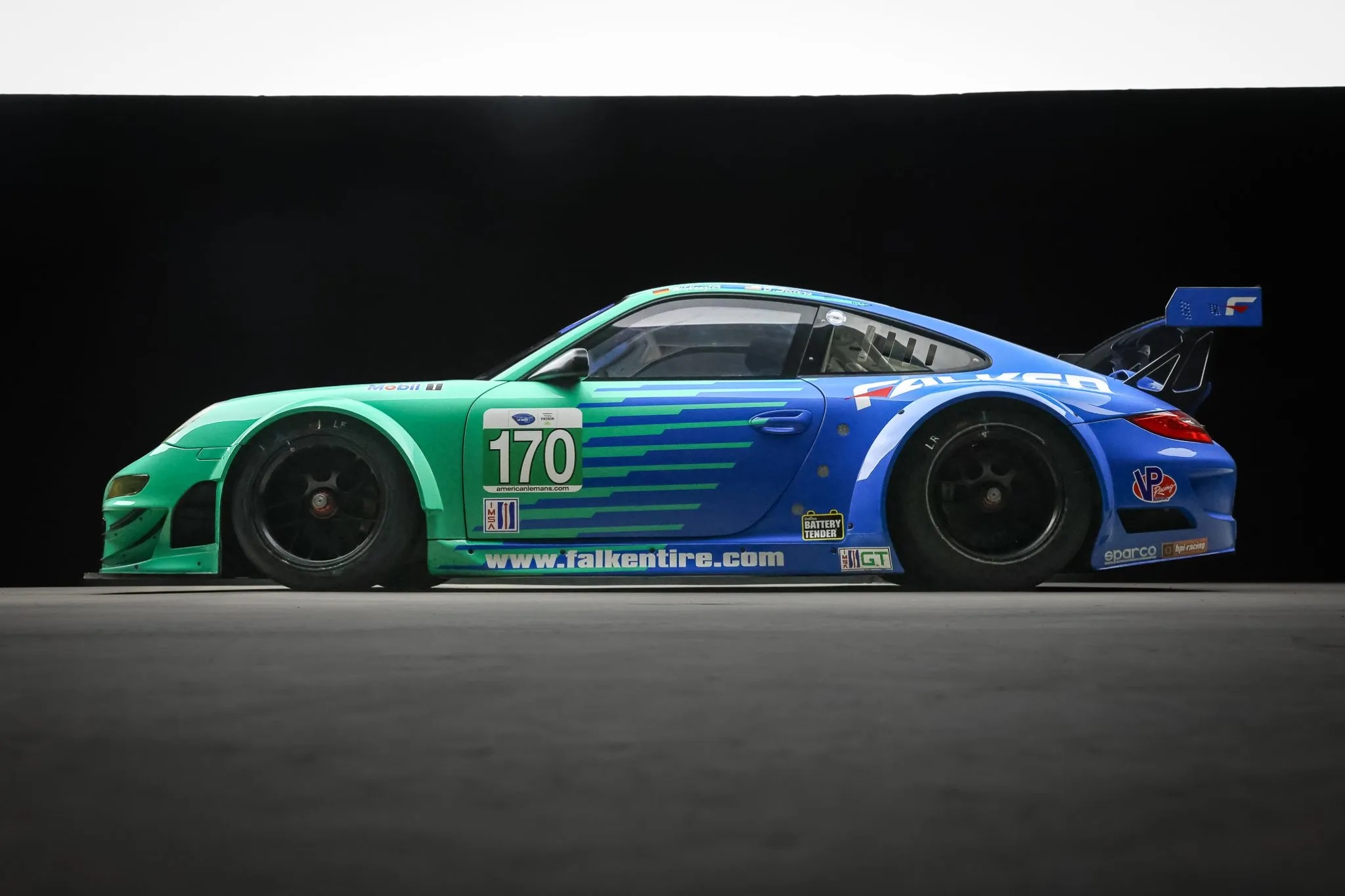 This particular 2010 Porsche 911 GT3 RSR is reported to be one of two models built that year with a 4.0- liter M97/81 flat-six engine, initially delivered to Team Falken Tire for the American Le Mans Series.