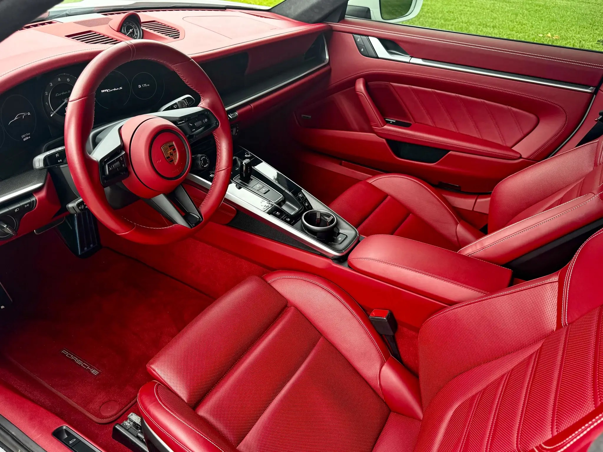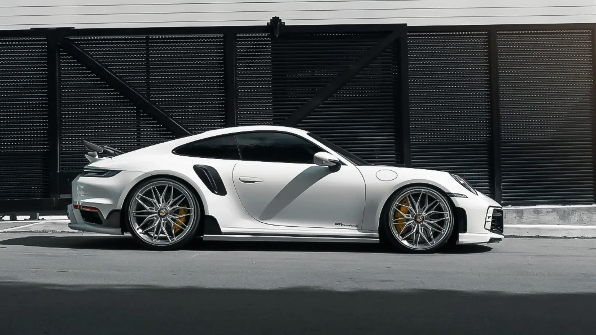 Additionally, the power output of the car’s twin-turbocharged 3.7-liter flat-six engine has been enhanced with an IPE exhaust system and Stage 2 DPE tune. It also rides on aftermarket 21″x22″ Ankry S1-X1 forged wheels, adding to its striking appearance.