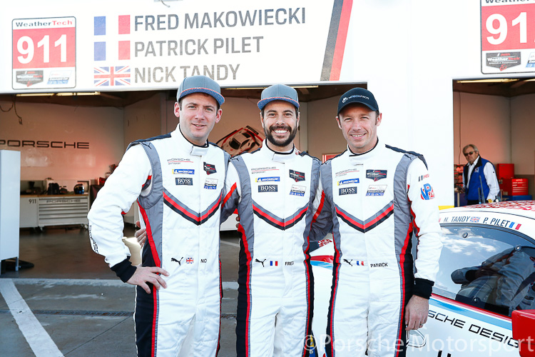 (L-R) Porsche GT Team: Nick Tandy, Frederic Makowiecki and Patrick Pilet