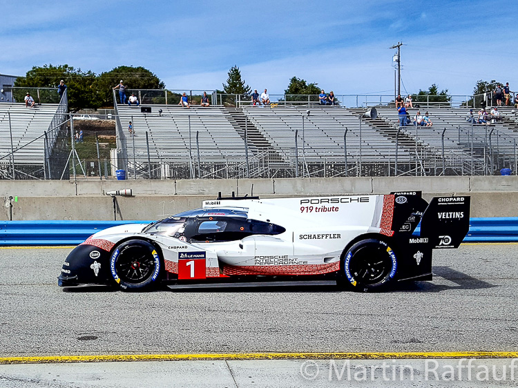 Porsche does a superb job in organising this event. As you can imagine, the logistics of arranging it are challenging with hundreds of cars showing up. Many are brought from the Stuttgart factory to California just for this event, but most are however brought by private owners. Some race in the race groups, while others just sat on display in the magnificent Chopard sponsored Heritage display. This display was in the centre of the paddock under a huge tent. Cars here were on display by invitation only and were selected to represent the defining cars over the 70-year life span of Porsche. They ranged from the 1938 Type 64 Berlin-Rome racer to the 1951 356SL Gmünd coupe all the way up to the 919 Hybrid. While none of these cars were raced, a few did some demonstration laps, including the Type 64 Berlin-Rome racer!