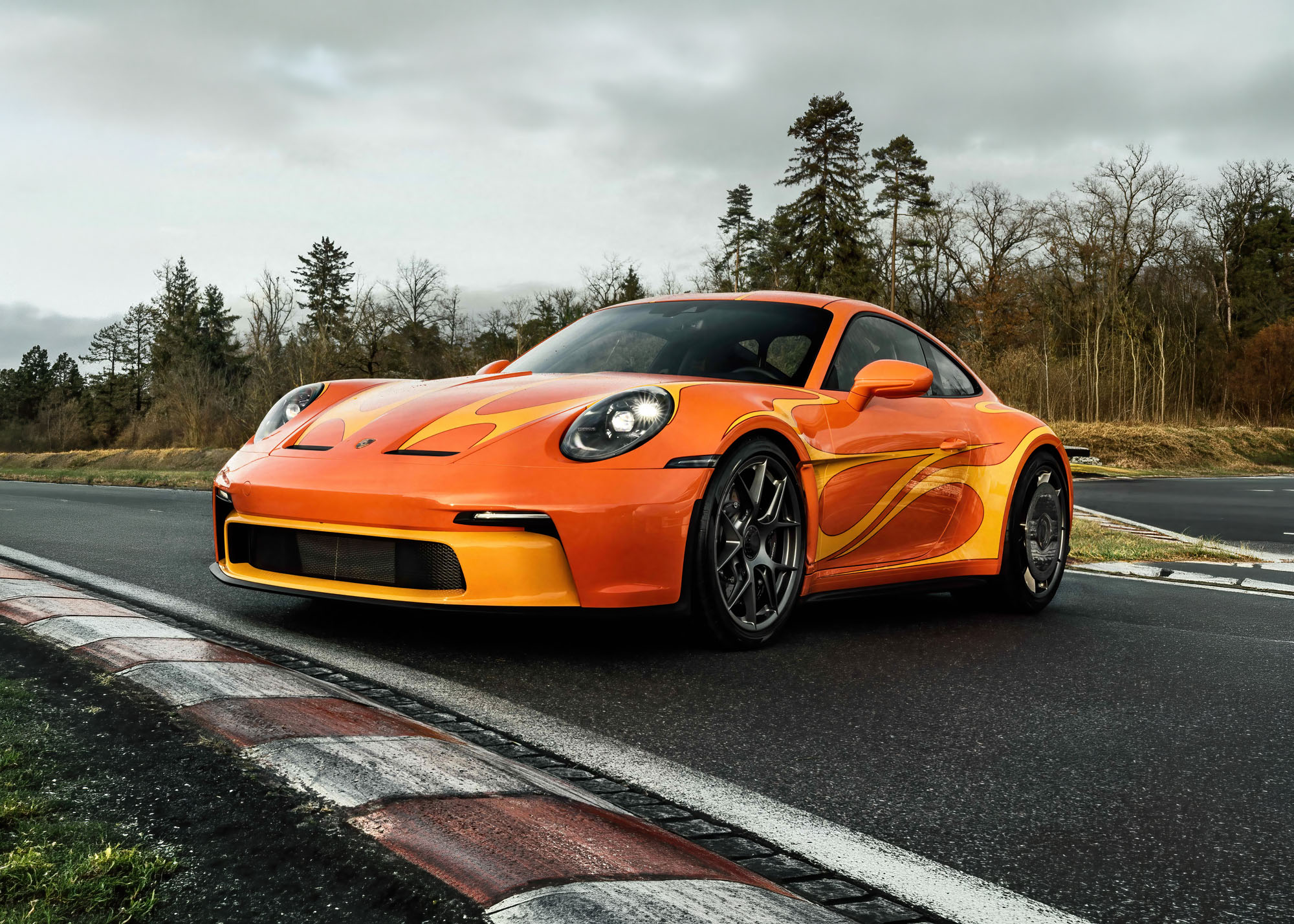 Porsche’s Sonderwunsch division approached the project with a meticulous eye for detail. As with the original car, subtle Signal Yellow accents remain visible across selected elements, while the majority of the bodywork is finished in Phoenix Red. Rather than replicating period sponsor decals, designer Grant Larson—known for the Carrera GT and first-generation Boxster—developed a flowing, hand-applied color treatment inspired by the original tones.