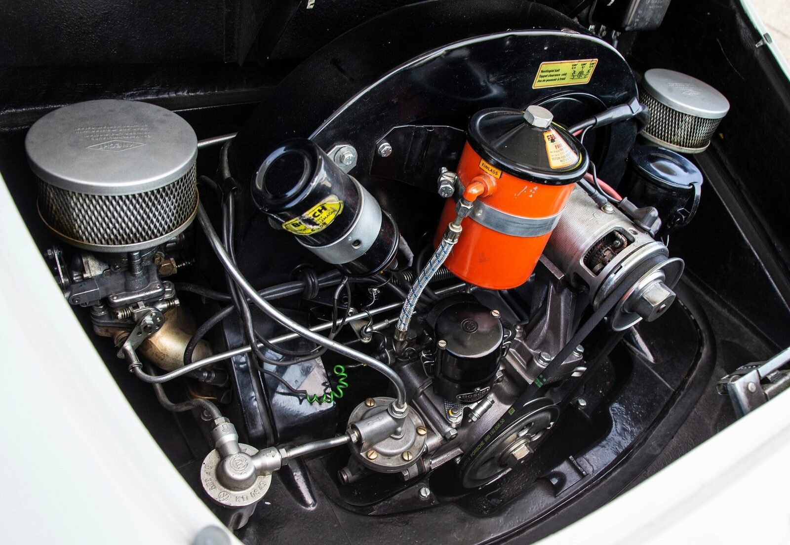 In 1954, Porsche production shifted from the Reutter facilities back to their new building called Werk II. There they had the room to produce Hoffmann’s Speedster. After producing a single prototype from a cabriolet body, Porsche finalized the Speedster specification with no radio, an integrated dash, bucket seats, a curved glass windscreen and a simple folding top. From November 1954 the engines acquired a three-part crankcase and driving safety benefited from a front stabilizer and reinforced steering knuckles.
