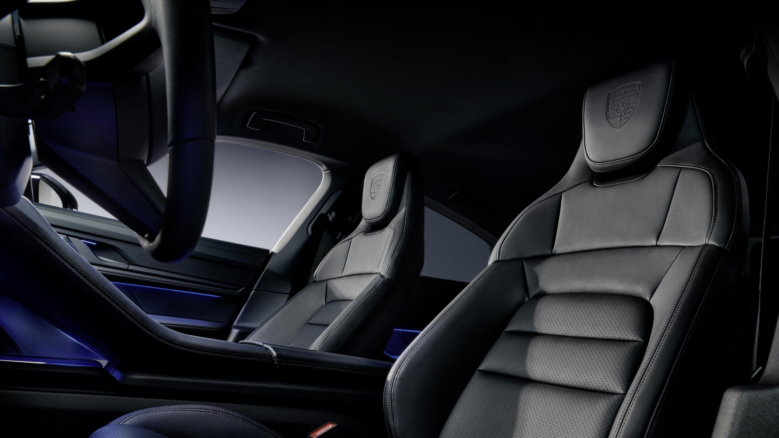 In addition, the following list of normally optional equipment comes as standard on Black Edition models: Lane Change Assist, Surround View including Active Parking Assist, 21-inch wheels with center caps featuring the full-color Porsche crest, HD-Matrix Design LED headlights, puddle light projectors that show the Porsche logo, 14-way comfort seats including memory function, Porsche crest on the headrests, a BOSE® Surround Sound System including Dolby Atmos, Porsche Electric Sport Sound, Storage package, and black embossed leather trim. The Taycan also features an exclusive badge in the center console bearing the ‘Black Edition’ designation.