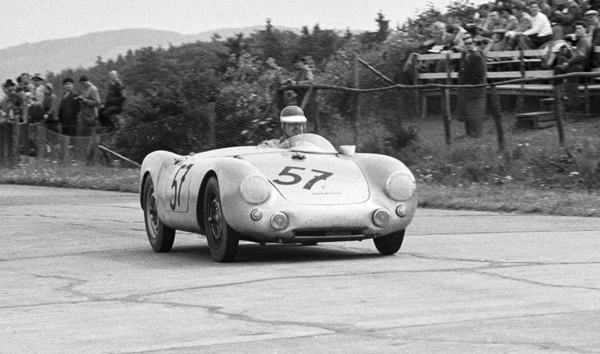 In an August 12, 1954 race at the ‘Ring for 1½-liter cars Huschke backstopped the Porsche team in fourth with Herrmann winning ahead of two more 550 Spyders.