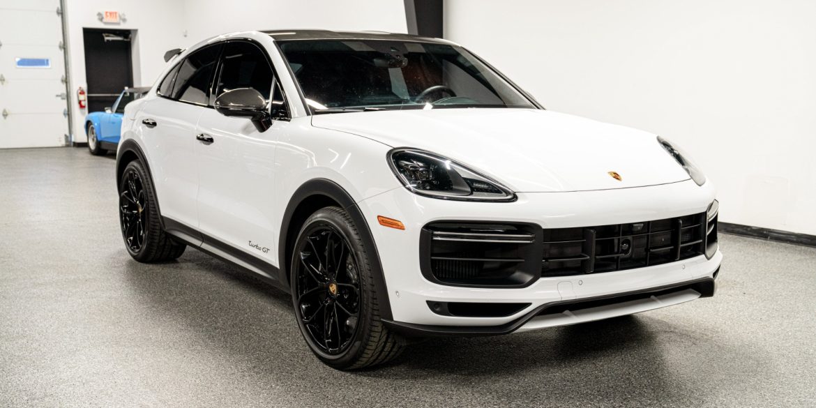 2023 Porsche Cayenne Turbo GT in Carrara White Metallic over Black leather with only 22,737 miles. This Cayenne is loaded with: 4.0L twin turbo V8 with 631 horsepower, 8 speed automatic transmission, 22 inch GT Design wheels in gloss black, wheel caps with Porsche crests, carbon ceramic brakes with brake...