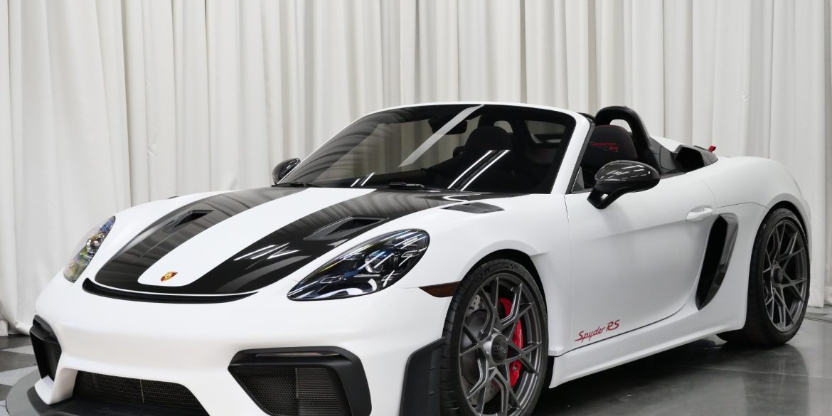 We have just added to our extensive exotic car inventory a beautiful 2024 Porsche Spyder RS in White over Black with only 373 miles. This Spyder is loaded with: 4.0 Liter H6 with 493 horsepower, 7 speed PDK transmission, 20 inch Cayman GT4RS wheels in dark silver, Weissach package (front...