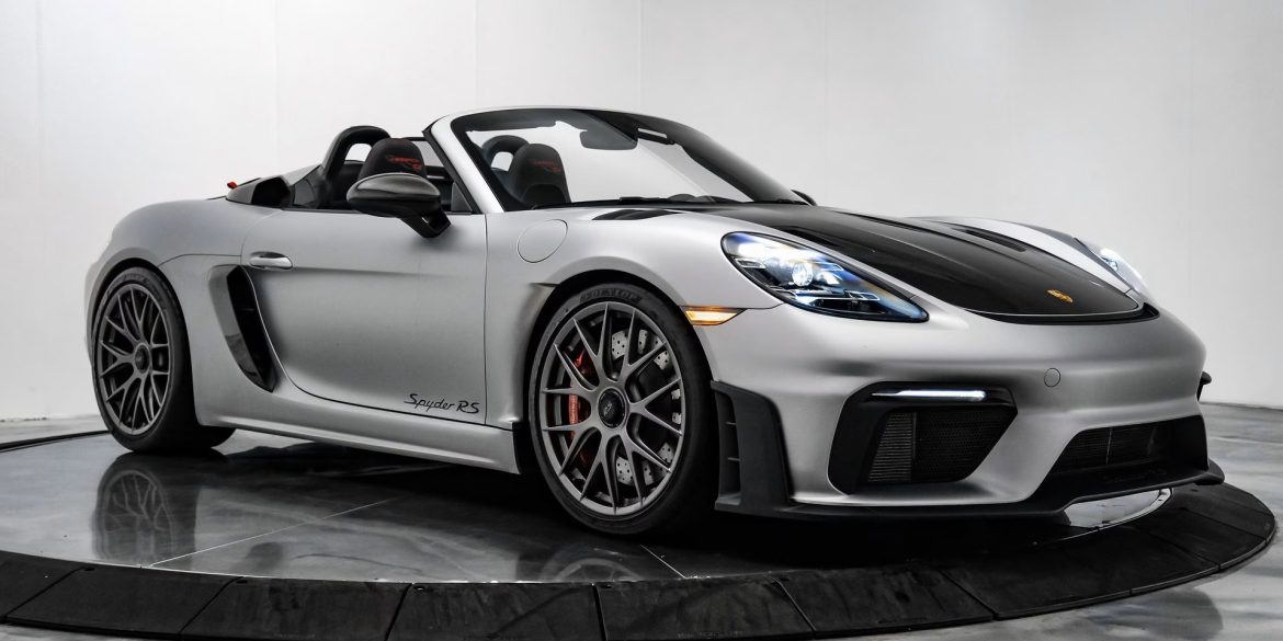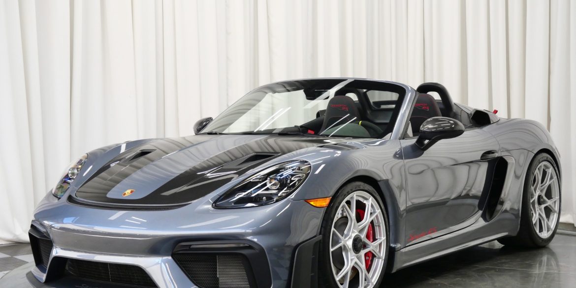 We have just added to our extensive exotic car inventory a beautiful 2025 Porsche 718 Spyder RS in Vanadium Grey Metallic over Black leather and Race-Tex interior and only 315 miles. This Spyder is loaded with: 4.0 Liter H6 with 493 horsepower, 7 speed PDK transmission, 718 Cayman RS wheels...