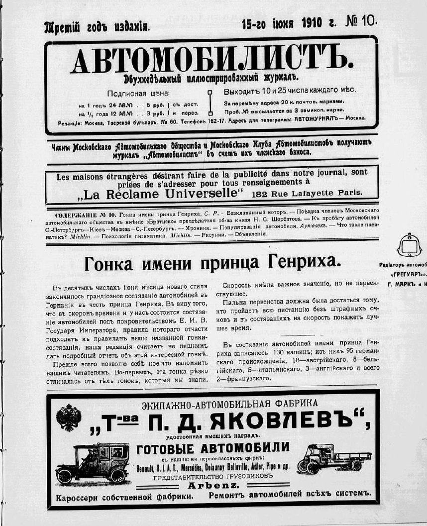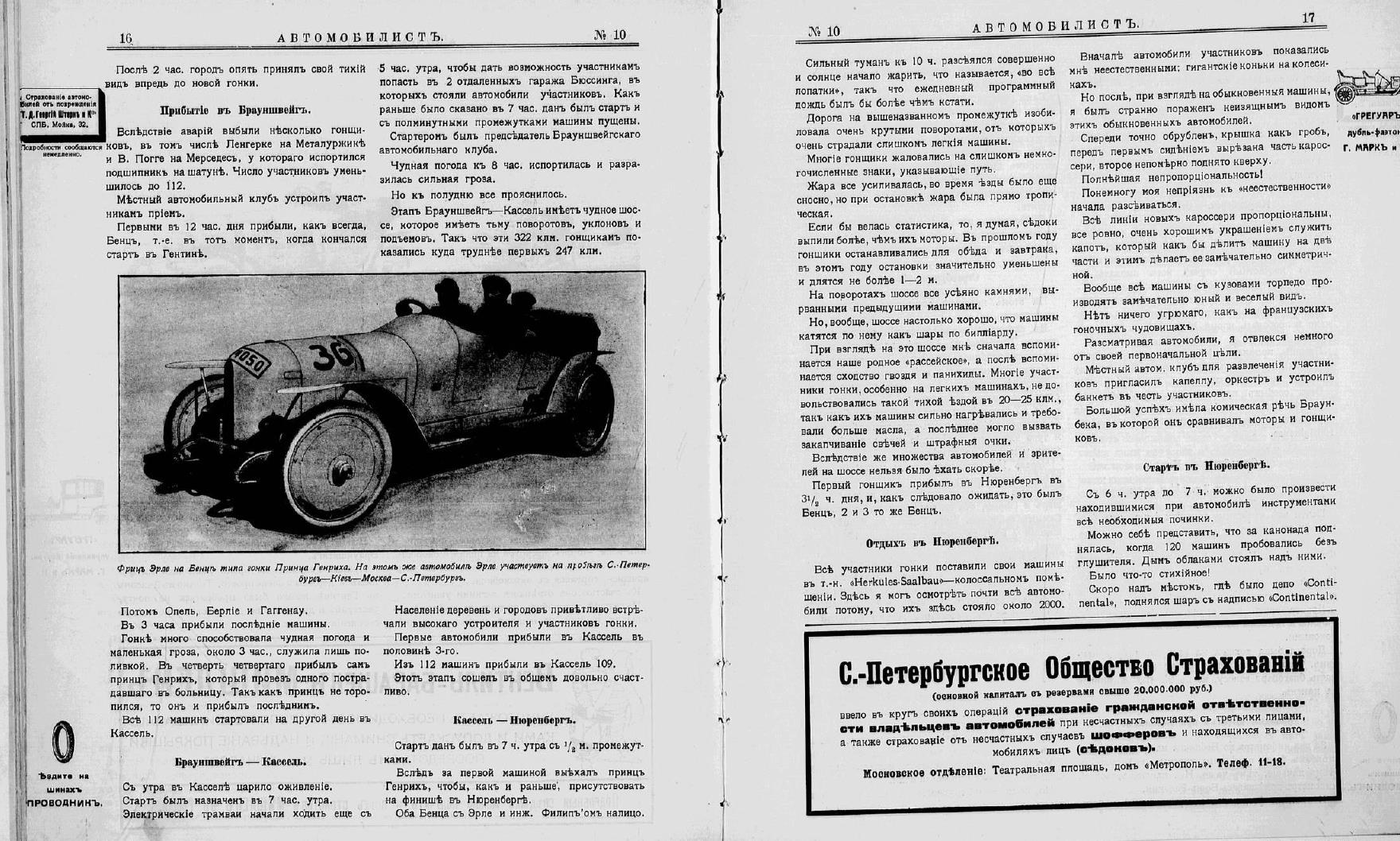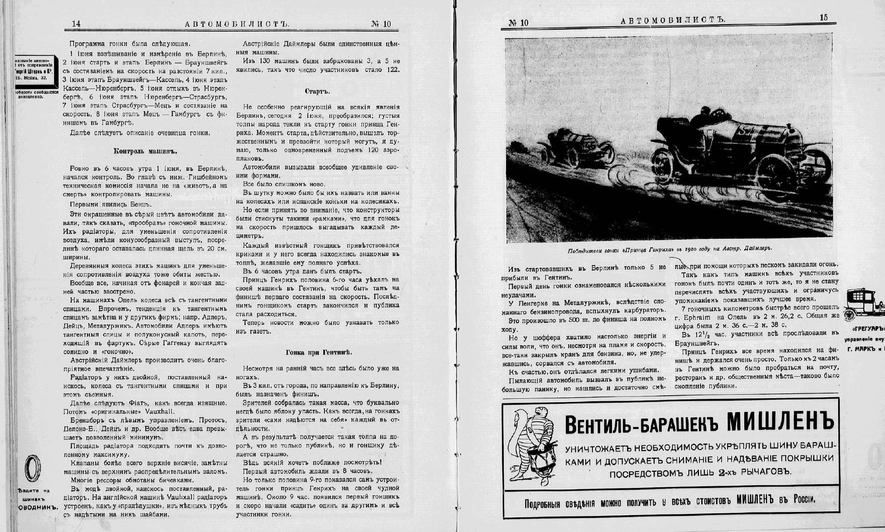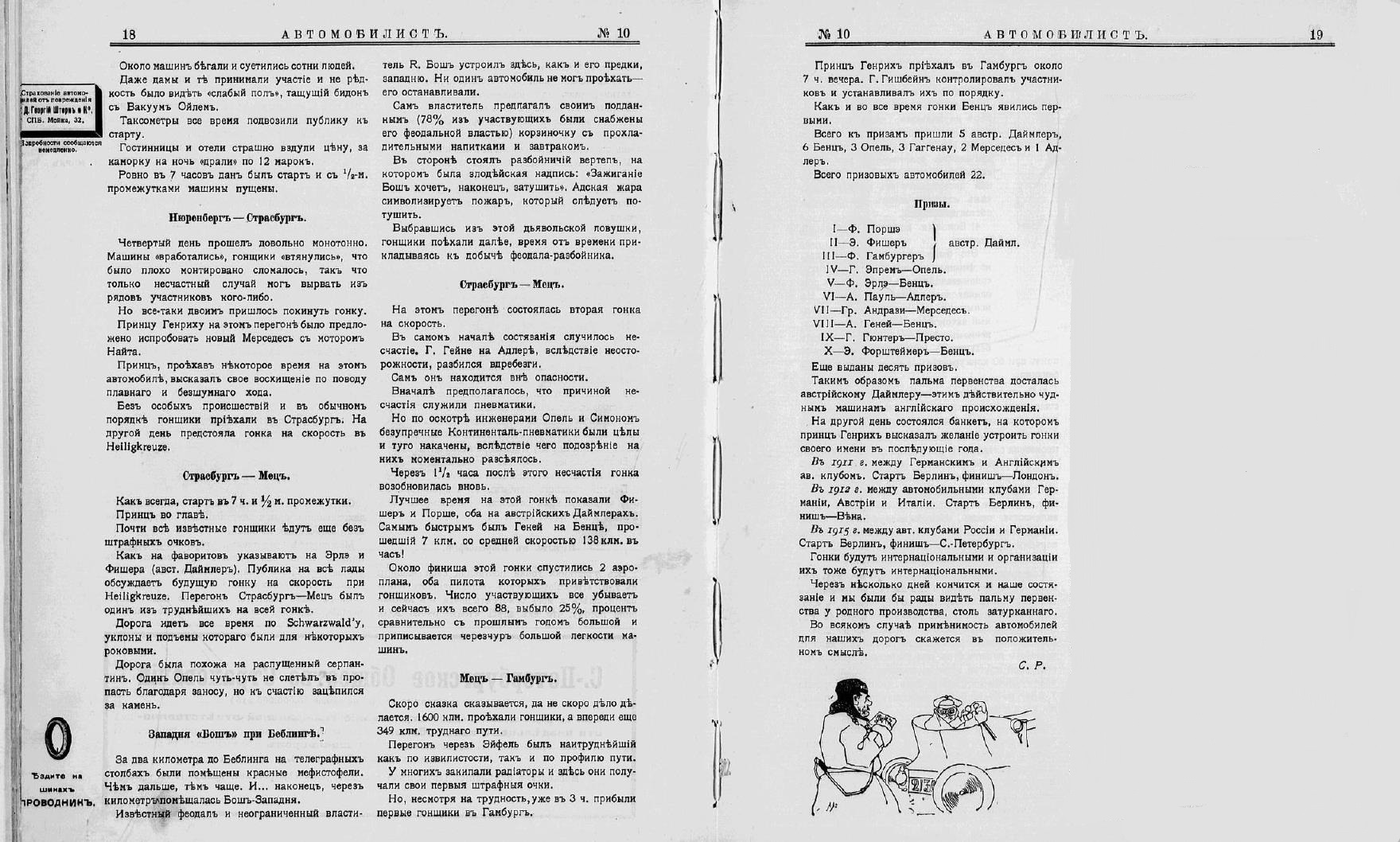 Prince Heinrich Race, 02-08.06.1910, winners: Austro-Daimler 27/80, Ferdinand Porsche (Avtomobilist Magazine, No. 10, 1910)