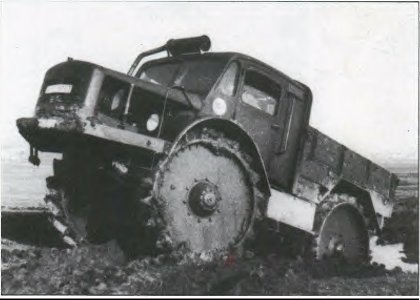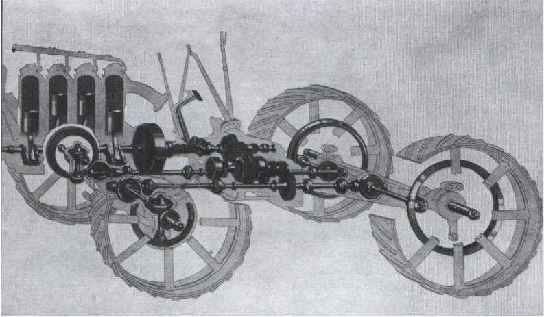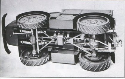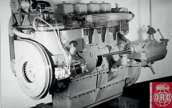 The tractor received an overhead valve, four-cylinder, air-cooled gasoline engine (Klockner-Humbolt-Deutz F4L) (6024 cm3 (115×140 mm), 90 horsepower at 2000 rpm (66.2 kW)), which was located in front of the front axle, a dry single-plate clutch, a main five-speed gearbox and two two-speed transfer cases with interaxle differential locks. From these, two pairs of side cardan shafts transmitted torque to the final drives mounted on the right and left sides of both solid axles, and then short shafts transmitted it to the bevel gears of each wheel.