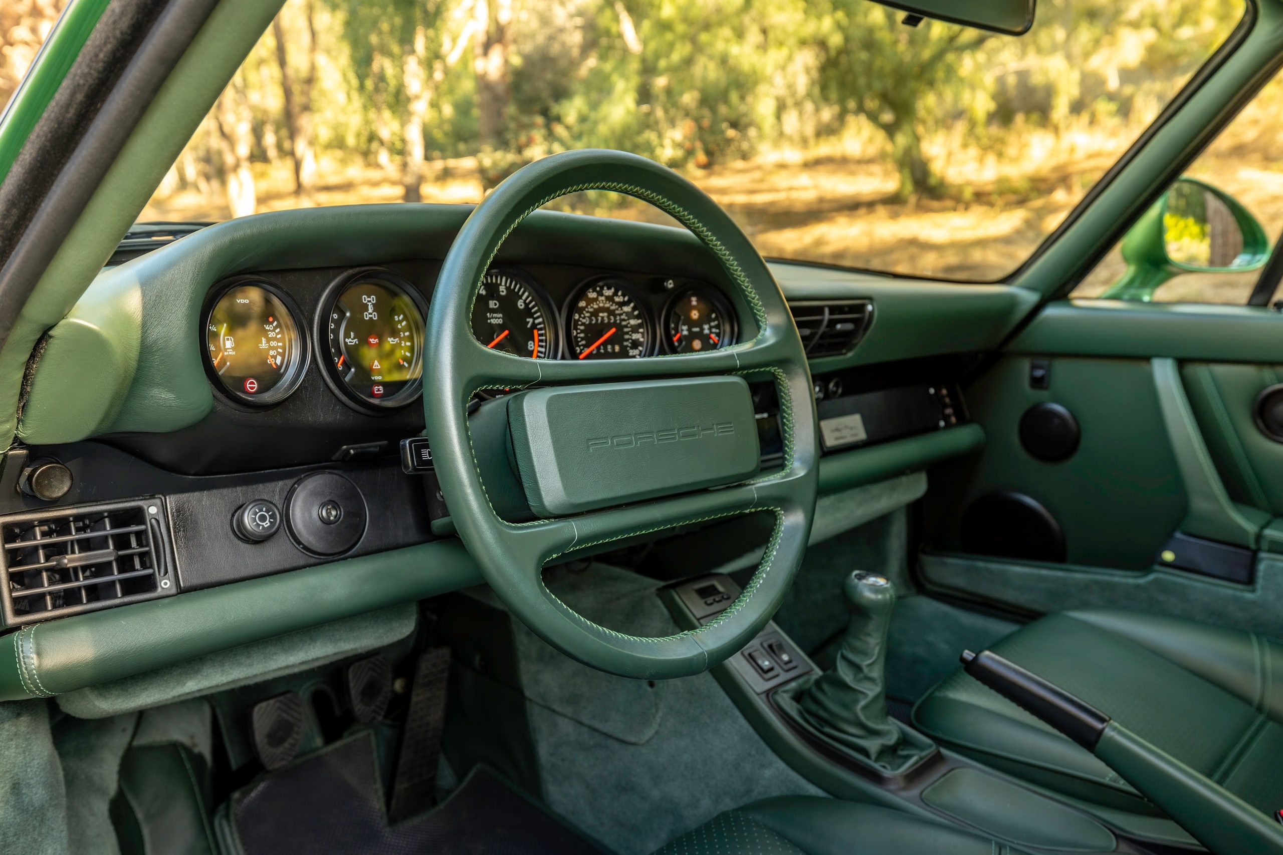 The car’s unique Emerald Green paint and Dark Green leather interior make it a one-of-a-kind example. It has also been showcased at prestigious events like Luftgekühlt and Rennsport Reunion.