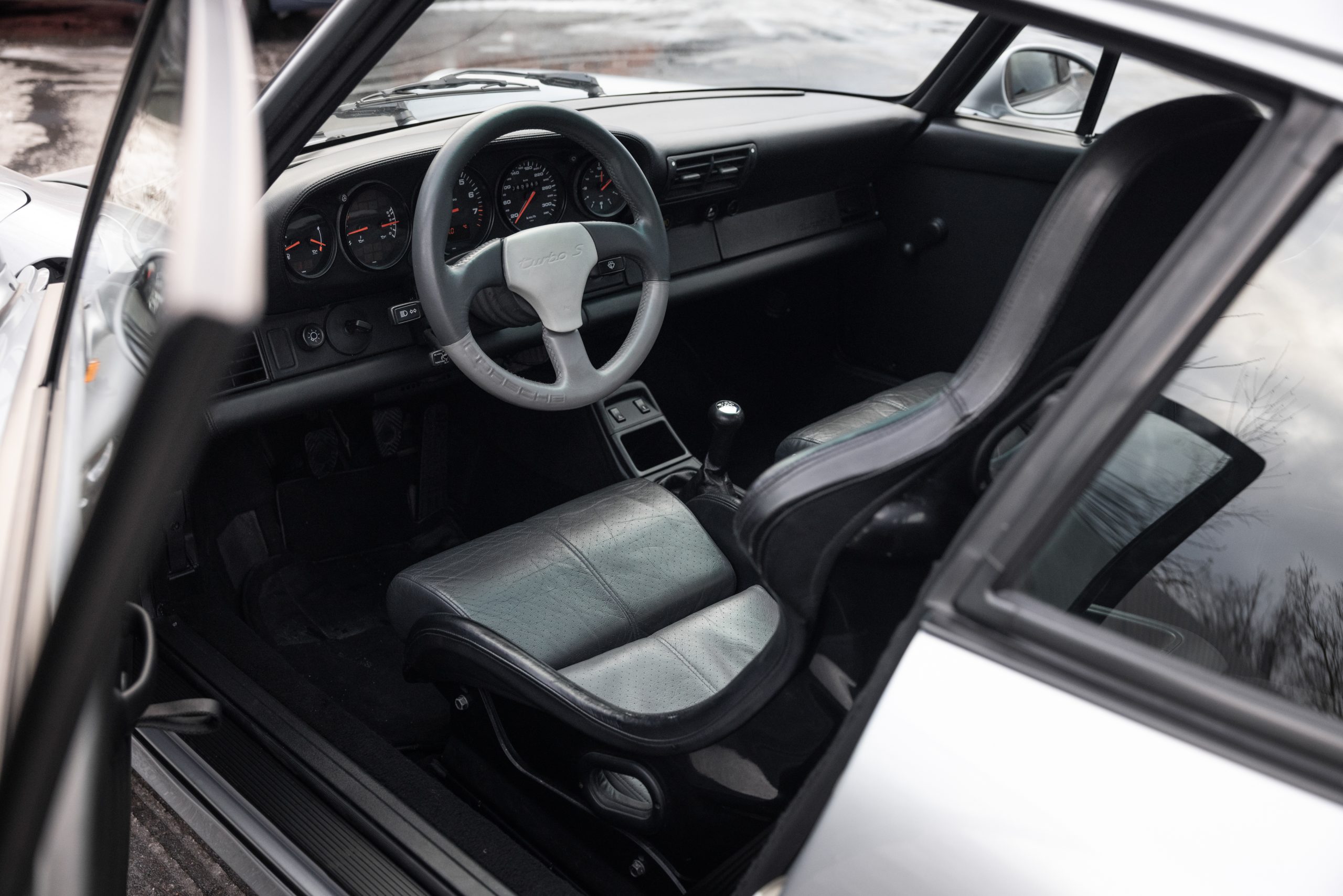 Weight reduction was a key aspect of the Turbo S Leichtbau. Porsche removed under-body protection, soundproofing, air conditioning, power steering, and rear seats. Further savings came from thinner glass, aluminum doors, a carbon-fiber luggage compartment, and lighter carpeting, resulting in a total weight loss of approximately 180 kg (397 pounds) compared to the standard Turbo.