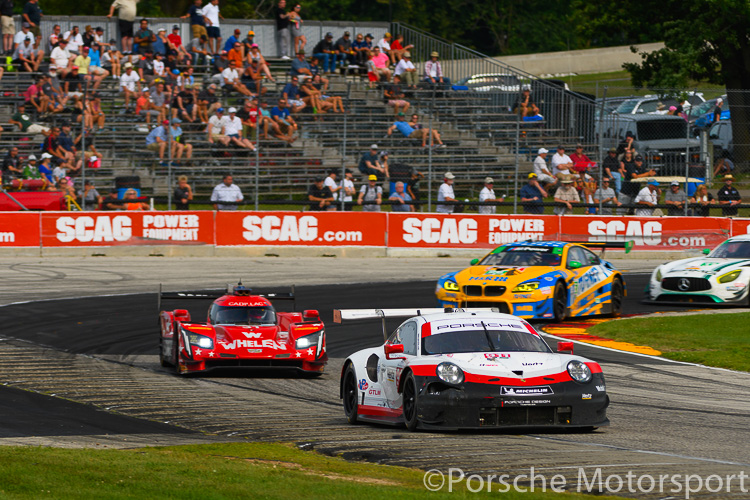 IMSA Road America, 5 August 2018: The factory #912 Porsche 911 RSR driven by Earl Bamber and Laurens Vanthoor IMSA Road America, 5 August 2018: The #58 Wright Motorsports Porsche 911 GT3 R driven by Patrick Long and Christina Nielsen