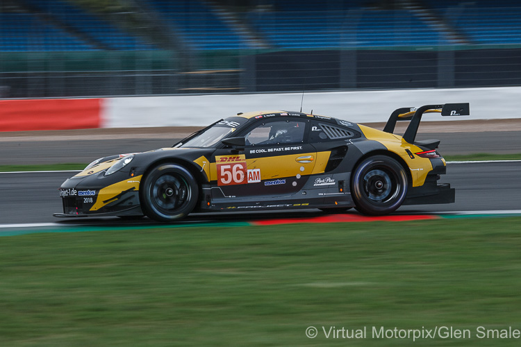 WEC Silverstone 6 Hours, 18-19 August 2018: The #56 Team Project 1 Porsche 911 RSR driven by Jörg Bergmeister, Patrick Lindsey and Egidio Perfetti during FP2 on Friday 17 August 2018