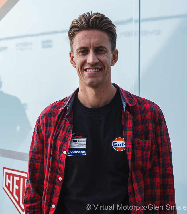 WEC Silverstone 6 Hours, 18-19 August 2018: (above) Father and son team of Gianluca and Giorgio Roda driving the #88 Dempsey-Proton Porsche RSR; (right) Ben Barker, one third of the driving team in the #86 Gulf Racing Porsche RSR, in relaxed mood on Thursday 16 August 2018