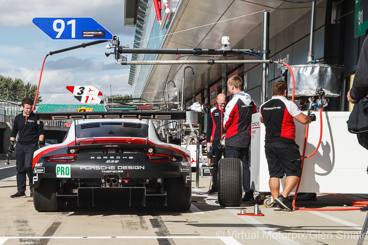 WEC Silverstone 6 Hours, 18-19 August 2018: #91 Porsche 911 RSR driven by Richard Lietz/Gianmaria Bruni, in the pit lane before Free Practice 2
