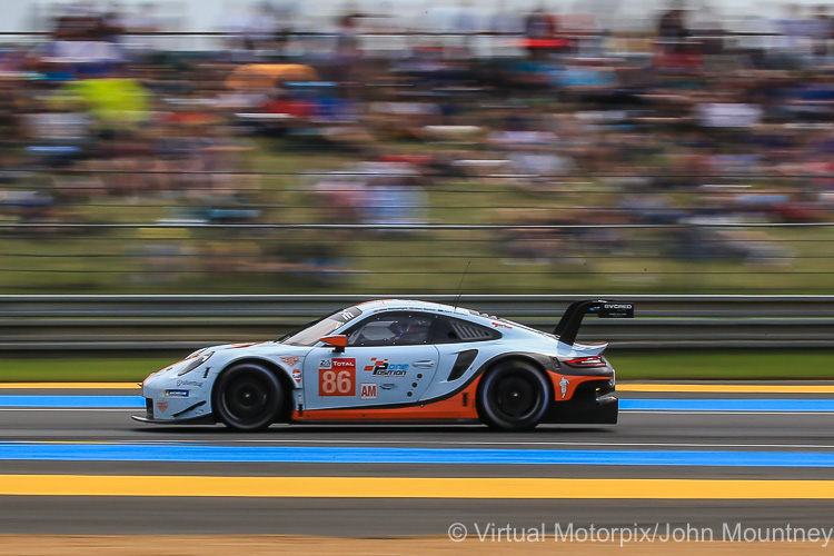 The GTE Pro and Am Porsche 911 RSR are essentially running the same spec machine in both classes. The 911 RSR in the Pro class has a minimum weight limit of 1269 kg and the engine must run with a pair of 30.3 mm restrictors. In order to establish a performance difference between the Pro and Am Porsches, the 911 RSR in the Am class must have a minimum weight of 1279 kg and the engine must be fitted with a pair of 29.9 mm restrictors.