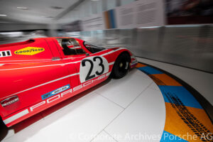 The 1970 #23 Porsche 917 KH at the Le Mans 50 years victory celebration at the Museum on 13/14 June 2020