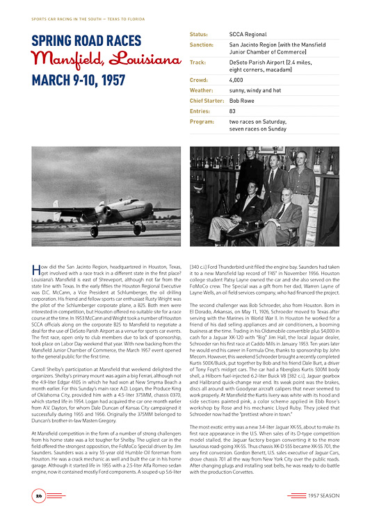 Despite painting a picture that racing in the South perhaps appeared second-rate in comparison with the North East or the West Coast, that was by no means the case, at least as far as cars on track was concerned. Many of the events would see late-model Ferraris, Maseratis, Jaguars, Porsches, OSCAs and Climax-engined cars such as Lotus, Cooper and Elva which did battle with American V8-powered vehicles including Corvettes and homebuilt Specials.