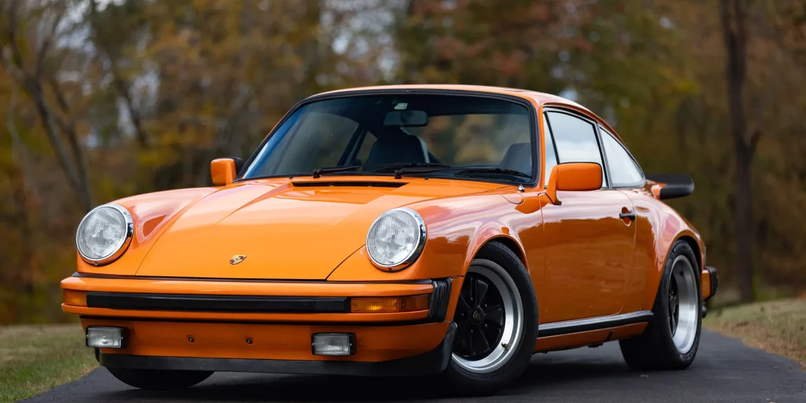 This 1977 Porsche 911S coupe was acquired by the selling dealer in 2024 and was subsequently fitted with a 3.2-liter flat-six. The car has been modified with steel rear fender flares, a whale-tail decklid, and H4 headlights, and it is finished in Continental Orange over black leatherette and cloth upholstery....