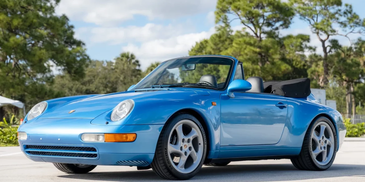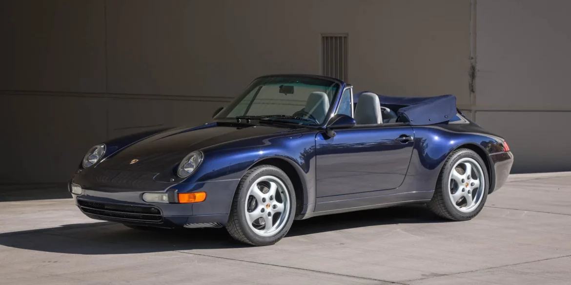 This 1995 Porsche 911 Carrera cabriolet is a German-market example that was specified in paint-to-sample Tahoe Blue Metallic and with an X51 3.8-liter flat-six, which is mated to a six-speed manual transaxle. The car also has a black soft top, 18″ Turbo Twist wheels, a limited-slip differential, and a speed-activated...