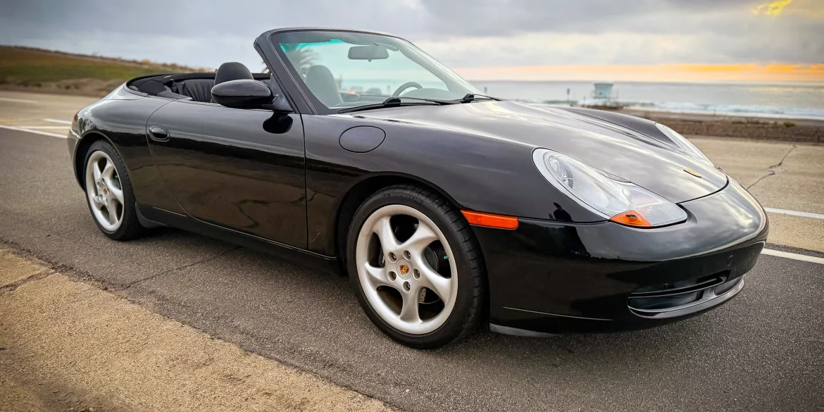 This 1999 Porsche 911 Carrera cabriolet is finished in black over black full leather and is powered by a 3.4-liter M96 flat-six linked to a six-speed manual transaxle and a limited-slip differential. Features include a black soft top as well as 18″ Turbo-look wheels, xenon headlights, a deployable rear spoiler,...