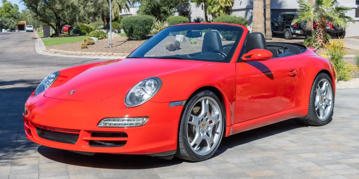This 2006 Porsche 911 Carrera S cabriolet was initially sold in New Jersey and spent time in Virginia and Arizona through the seller’s acquisition in 2024. Finished in Guards Red over black leather, the car is powered by a 3.8-liter flat-six paired with a six-speed manual transaxle. Features include the...
