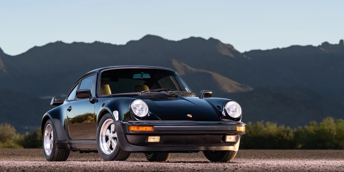 This 1987 Porsche 911 Turbo is a factory M505 slant nose coupe that was purchased by the current owner in 2001. Powered by a turbocharged 3.3-liter flat-six paired with a four-speed manual transaxle, the car is finished in black over black leather upholstery. The car is equipped with 16″ Fuchs...